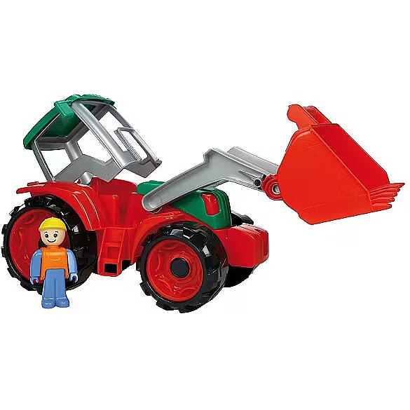 Description - Kolorowy traktor o długości 34 cm, wykonana z elestycznego plastiku wysokiej jakości, spełniającego normy europejskie. Funkcjonalne autko, łyżką można nakładać piasek na wywrotkę lub w inne miejsce. Figurka w zestawie.