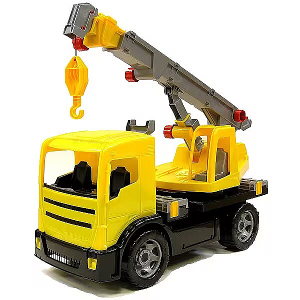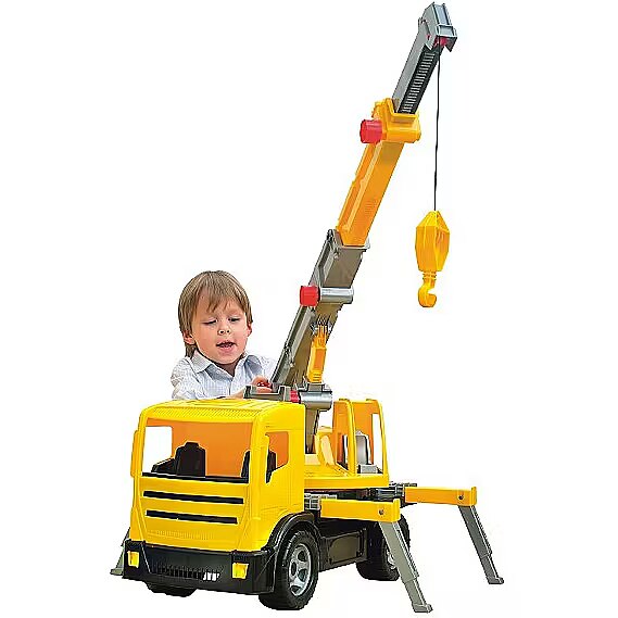 Description - The new Lena lift has four retractable side supports, a sliding crane that can rotate 270 degrees, a hook that can be controlled by a side knob, two wheel locks to keep the crane away while in operation, and a spacious cab and cab to operate the crane. The length of the vehicle is 70 cm, the total height (with the crane extended) is 1.15 m. The toy can withstand up to 100 kg. Toy manufactured in the EU.