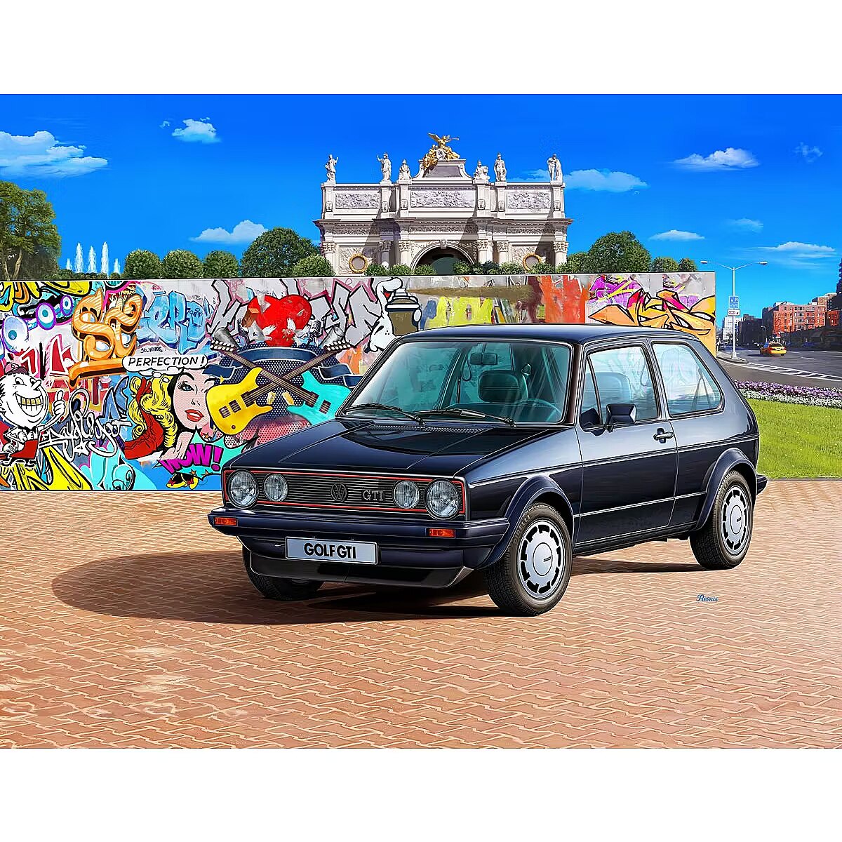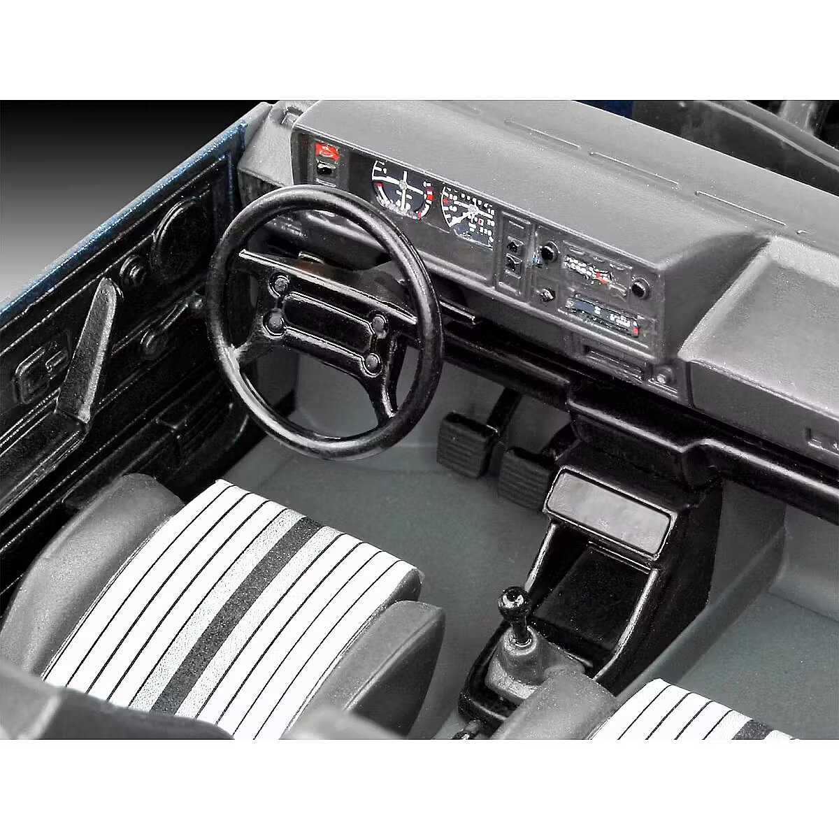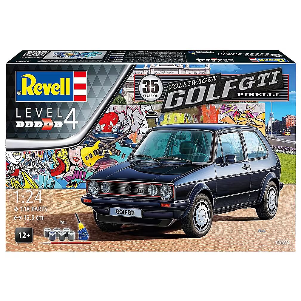 The set includes a model of the German VW Golf first-generation car, 6 basic paints, a brush and glue.