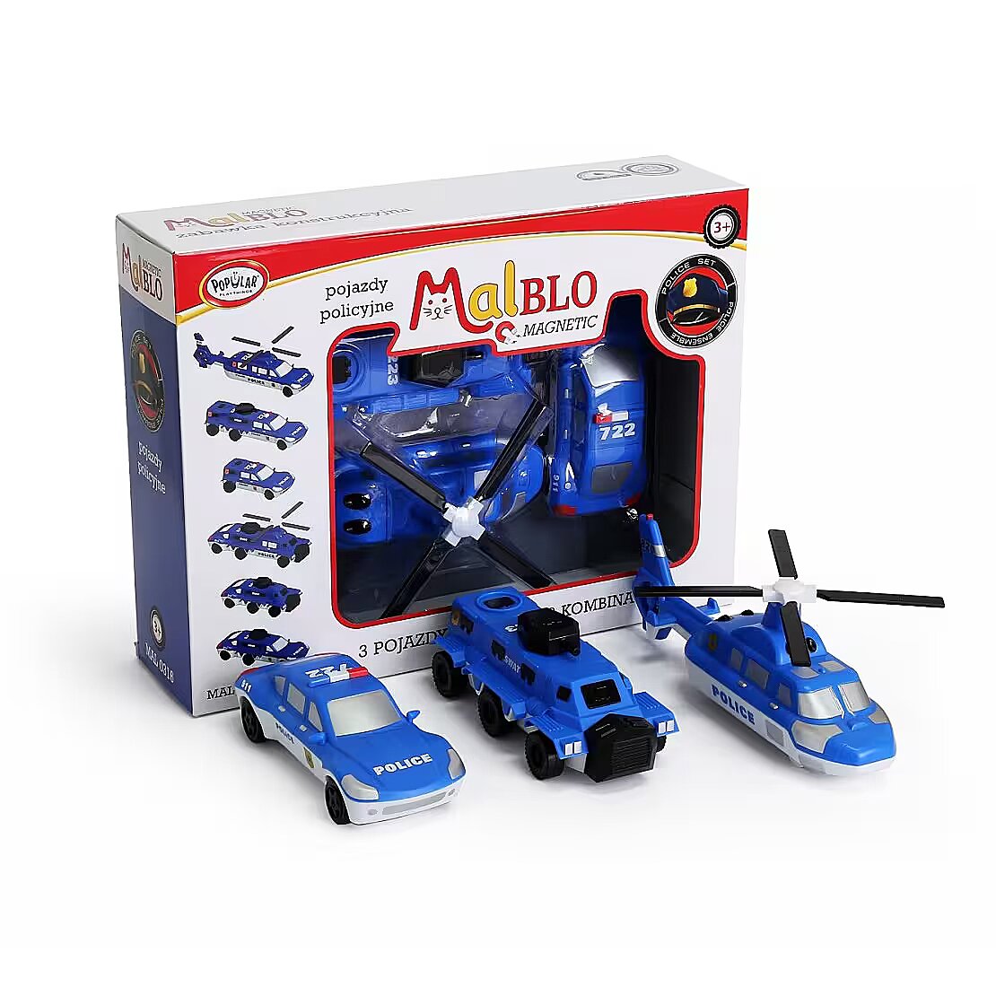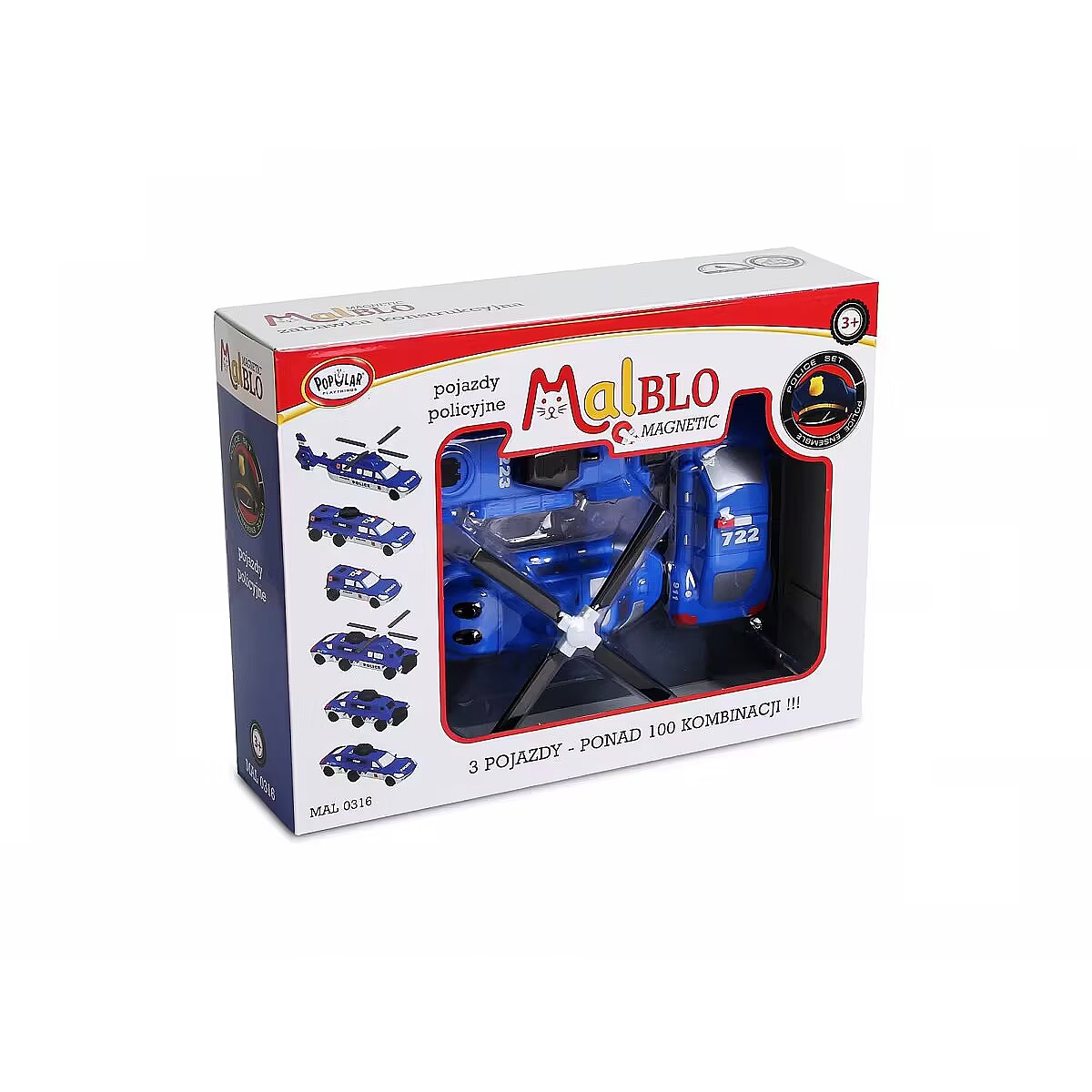 Description - MalBlo MAGNETIC magnetic bricks are a modular creative toy. The patented, innovative magnetic-snap system allows individual modules to be easily connected and disconnected to build a variety of vehicles. By connecting the modules together to create new vehicles, children develop their spatial imagination and concentration skills. Designing and building their own forms with MalBlo MAGNETIC bricks is great for developing creativity and manual dexterity. By connecting and disconnecting modules that have the right bonding force, children can also develop the strength of their hands. The product series consists of six themed sets. These include police vehicles, fire engines, construction vehicles, racing vehicles, space vehicles and trains and locomotives. All sets are compatible and the vehicles can be combined with each other in any way you like!!! There are 9 pieces in each set (3 finished vehicles), allowing you to create over 100 different combinations within just one set.
