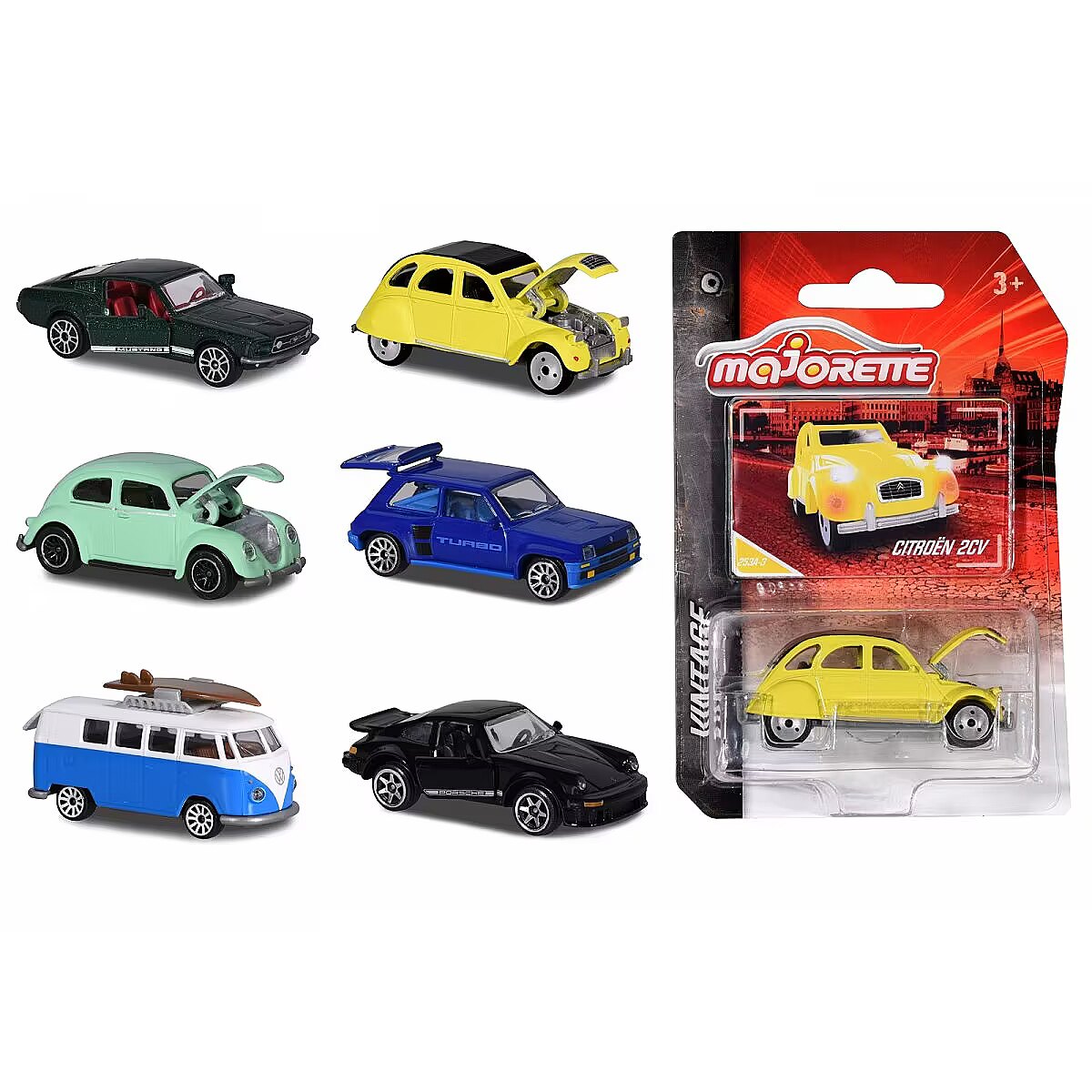 Description - Pojazd Majorette Vintage, 6 rodzajów Towar wysyłany losowo, brak możliwości wyboru konkretnego modelu. Cena dotyczy 1 sztuki.