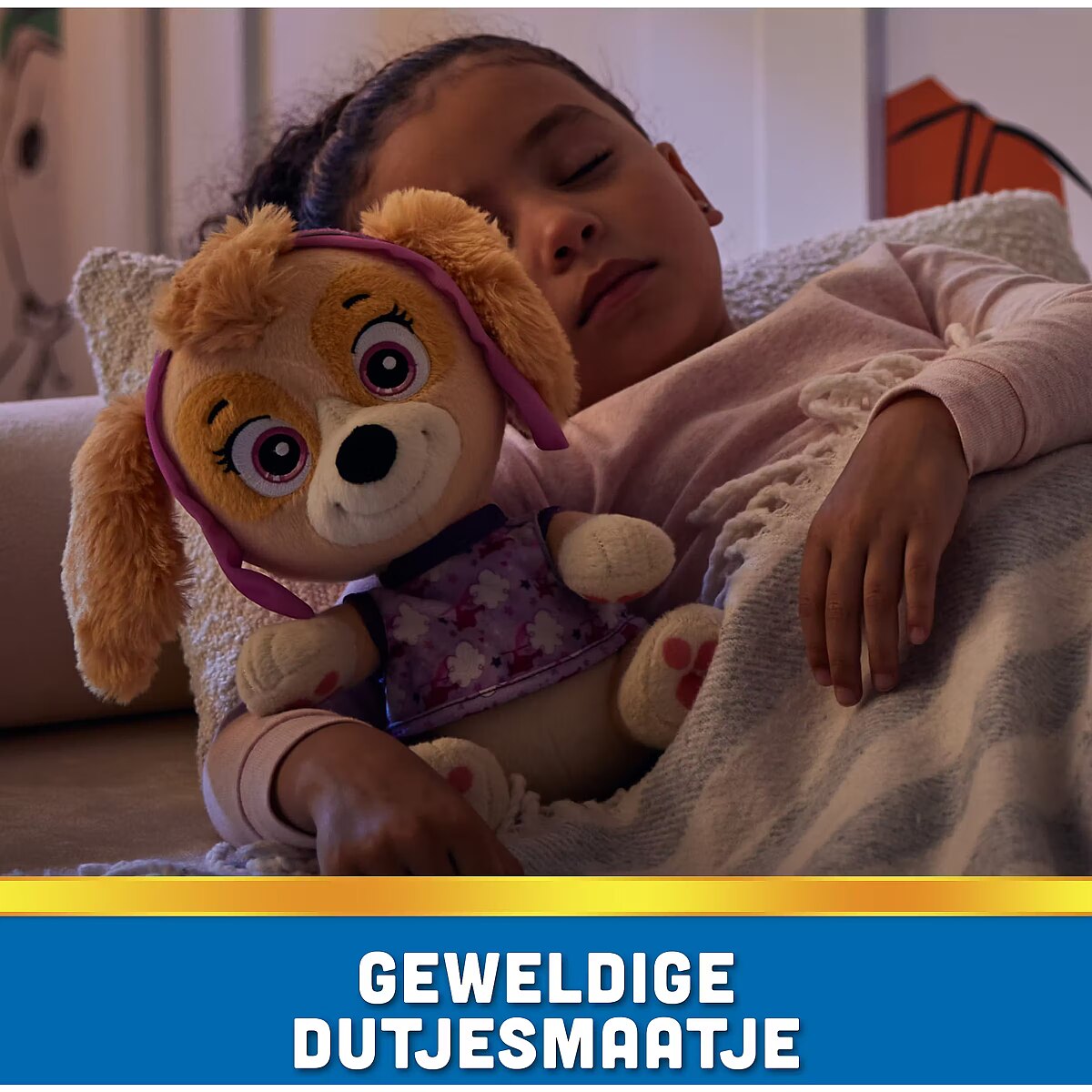 LongDesc - Bring home the perfect sidekick and sleepy-time companion with the PAW Patrol Bedtime Plush Skye! This incredibly cute plushie is made from super soft materials and will be any child’s favorite part of bedtime! With authentic detailing and realistic features, the PAW Patrol’s beloved pilot looks just like she does in the show and is wearing her signature pilot uniform, that is fastened by a Velcro closure, and can be flipped inside-out, turning it into her adorable pajamas! For double the fun, look for Bedtime Plush Chase to enjoy twice the excitement at bedtime! With PAW Patrol preschool toys, a kid can explore her or her imagination, and develop their motor skills through pretend play, as they relive their favorite scenes from the shows, before drifting off to sleep. Give the PAW Patrol fan in your life their very own cuddly pup and enjoy endless PAWsome adventures and super snuggly sleepy times with Bedtime Plush Skye!Includes: 1 Plush Toy