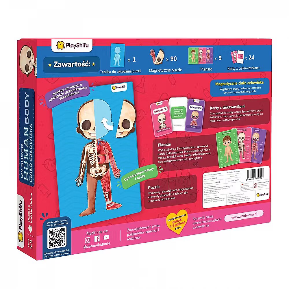 Accessories included - Magnetic board 90 × Magnetic puzzle pieces 5 × Human body information charts 24 × Fact cards