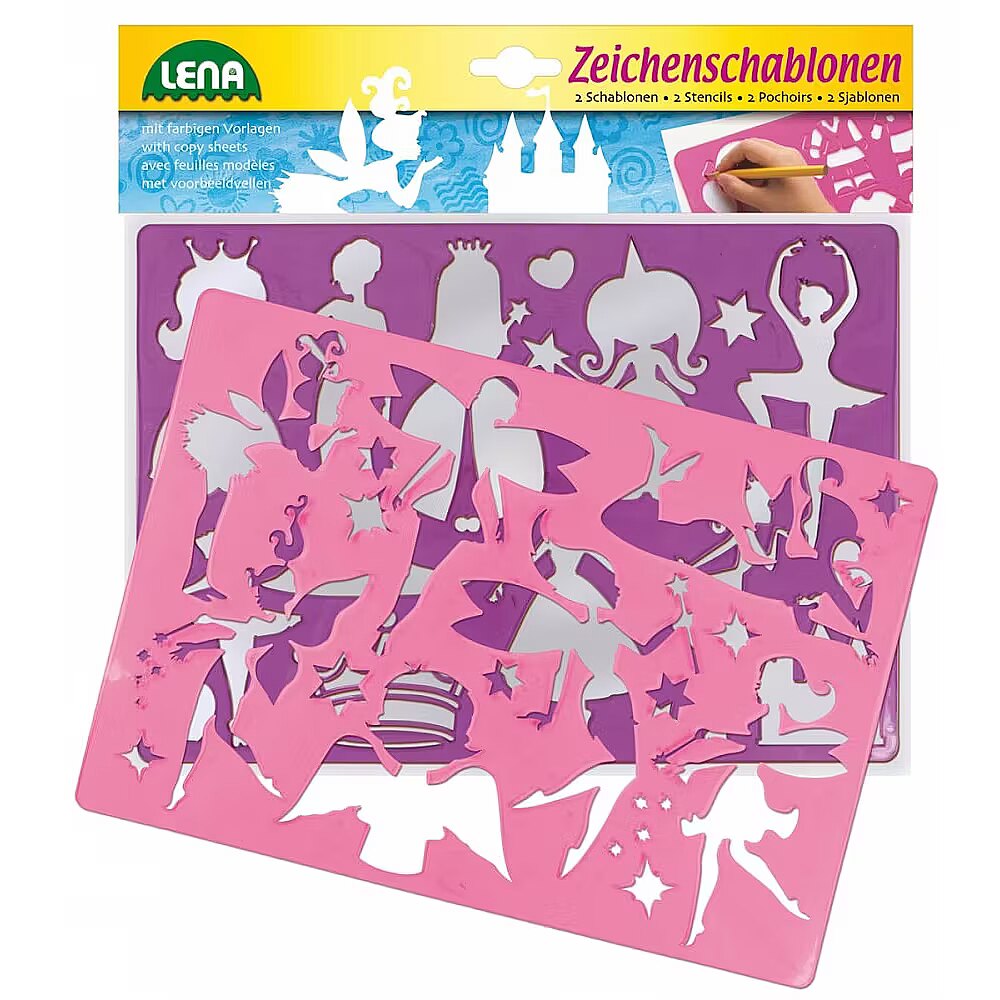LongSummaryDescription - Simm Spielwaren Stencils Princess & Elves. Type: Art stencil, Target audience: Children, Product colour: Multicolour. Package width: 280 mm, Package depth: 5 mm, Package height: 250 mm. Quantity per pack: 2 pc(s)