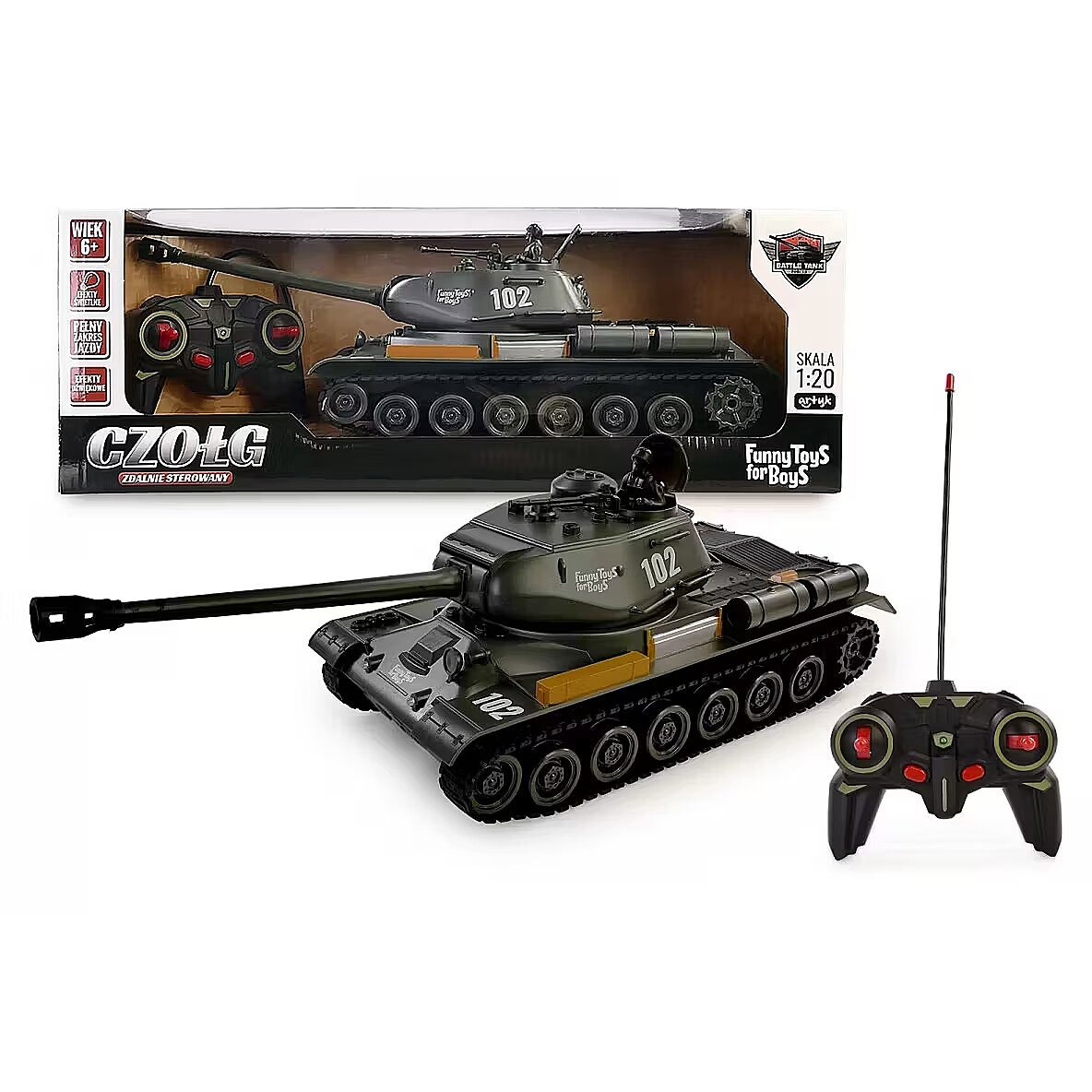 Description - R/C Tank Full-range driving Movable cannon Light and sound effects Batteries: 4.8v battery (tank) included, 2 x AA (controller) not included
