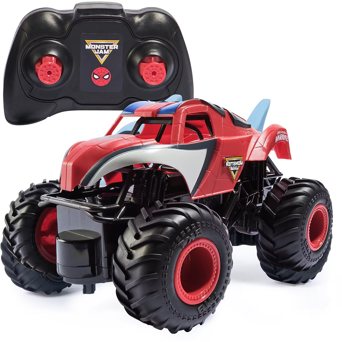 LongDesc - Dive into heroic playtime with the The Amazing Spider-Man RC Monster Truck from Monster Jam! This red and black striped truck brings the excitement of Monster Jam into your home, designed for ease of use and heroic adventures. Kids can feel like they’re part of Spiderman’s world, driving their very own monster truck with a kid-friendly remote that puts them in the driver’s seat. The truck is as durable as it is eye-catching, ready to tackle any mission kids can dream up. With the ability to race multiple trucks together, it’s the right choice for play dates and Monster Jam parties. This makes for a great alternative to a rc car, rc plane, remote control boat, remote control helicopter and other rc trucks. Whether zooming across the living room or in the backyard, this truck is built for imaginative play. Gift the joy of Monster Jam and the wonder of Marvel with this Spider Man RC Monster Truck!Includes: 1 Monster Jam 1:24 Scale RC, 1 Remote Control, 1 Instruction Guide