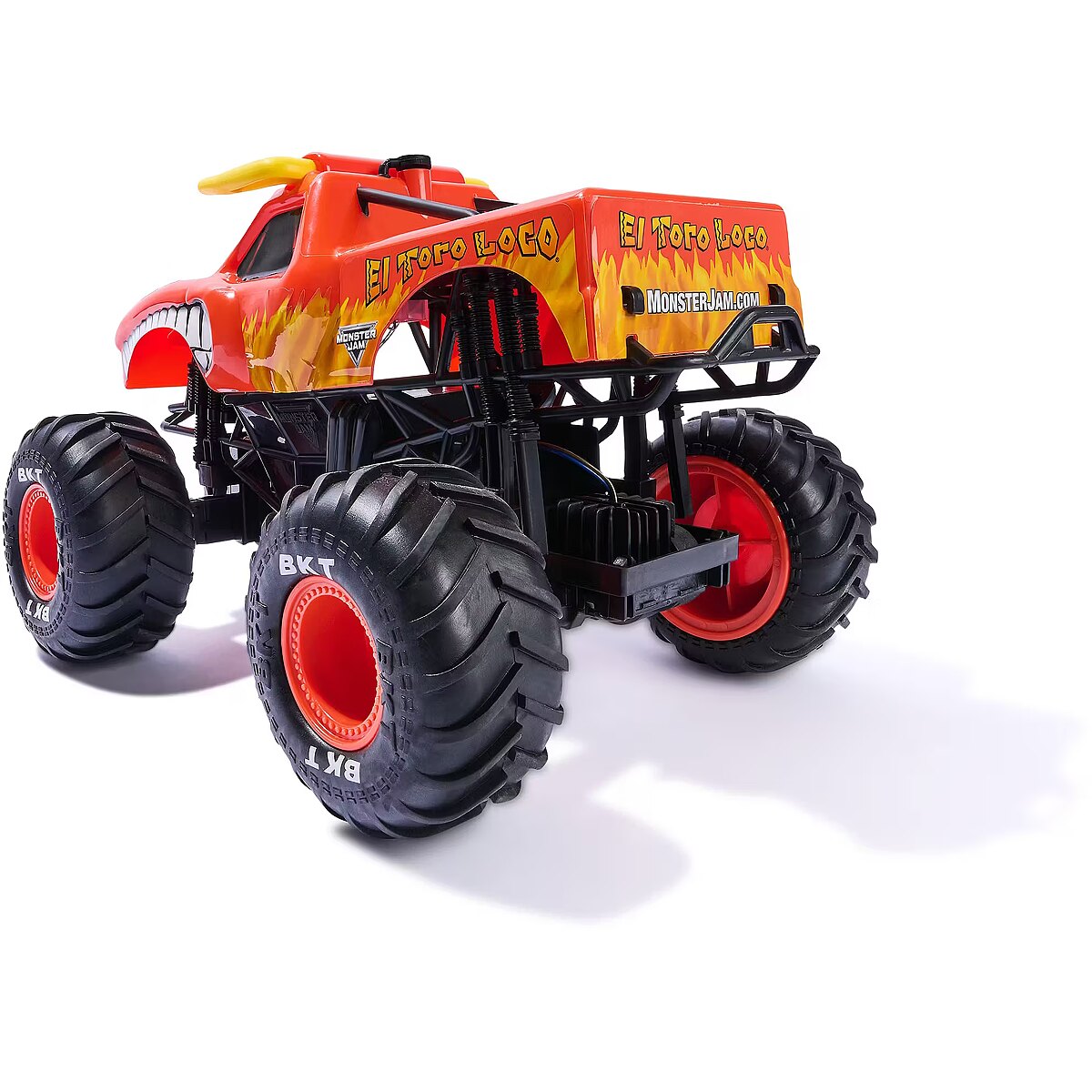 LongDesc - Rev up your engines and get ready for some high-octane fun with the Monster Jam Official 1:15 Scale El Toro Loco RC Truck! Built for true Monster Jam enthusiasts, this remote control truck brings the excitement of the live show right into your home. Featuring a full-function RC with a dual joystick controller and 2.4GHz frequency, you can race up to 6 Monster Jam monster trucks at once, controlling your El Toro Loco from up to 250 feet away! One of the standout features of this exclusive edition El Toro Loco is the smoke effects atomizer. Watch as it blows smoke out of the horns, replicating the thrilling effects seen in live Monster Jam events! This atomizer adds a layer of realism that will captivate both kids and adults alike. The 1:24 scale El Toro Loco RC is an authentic replica, complete with official BKT tires, detailed graphics, and a styled chassis. Every detail has been carefully designed to make you feel like you’re behind the wheel of the real monster truck. Perfect for performing epic stunts, crazy crashes, and brutal bashes, this RC truck can handle it all! Whether you're looking for a birthday present, holiday gift, or just a fun new toy, the Monster Jam Official 1:15 Scale El Toro Loco RC Truck is an ideal choice for kids aged 4 and up. Encourage their imagination and let them experience the thrill of Monster Jam right at home. Add this RC truck to their collection and watch as they embark on endless adventures filled with action-packed fun! Monster Jam toys, playsets, toy cars, and RC trucks are always at the top of kids' wish lists. Don't miss out on this opportunity to bring the excitement of Monster Jam to life with the El Toro Loco RC Truck. It's the perfect gift for boys and girls who love Monster Jam!Includes: 1 Monster Jam 1:24 Scale RC, 1 Remote Control, 1 Instruction Guide