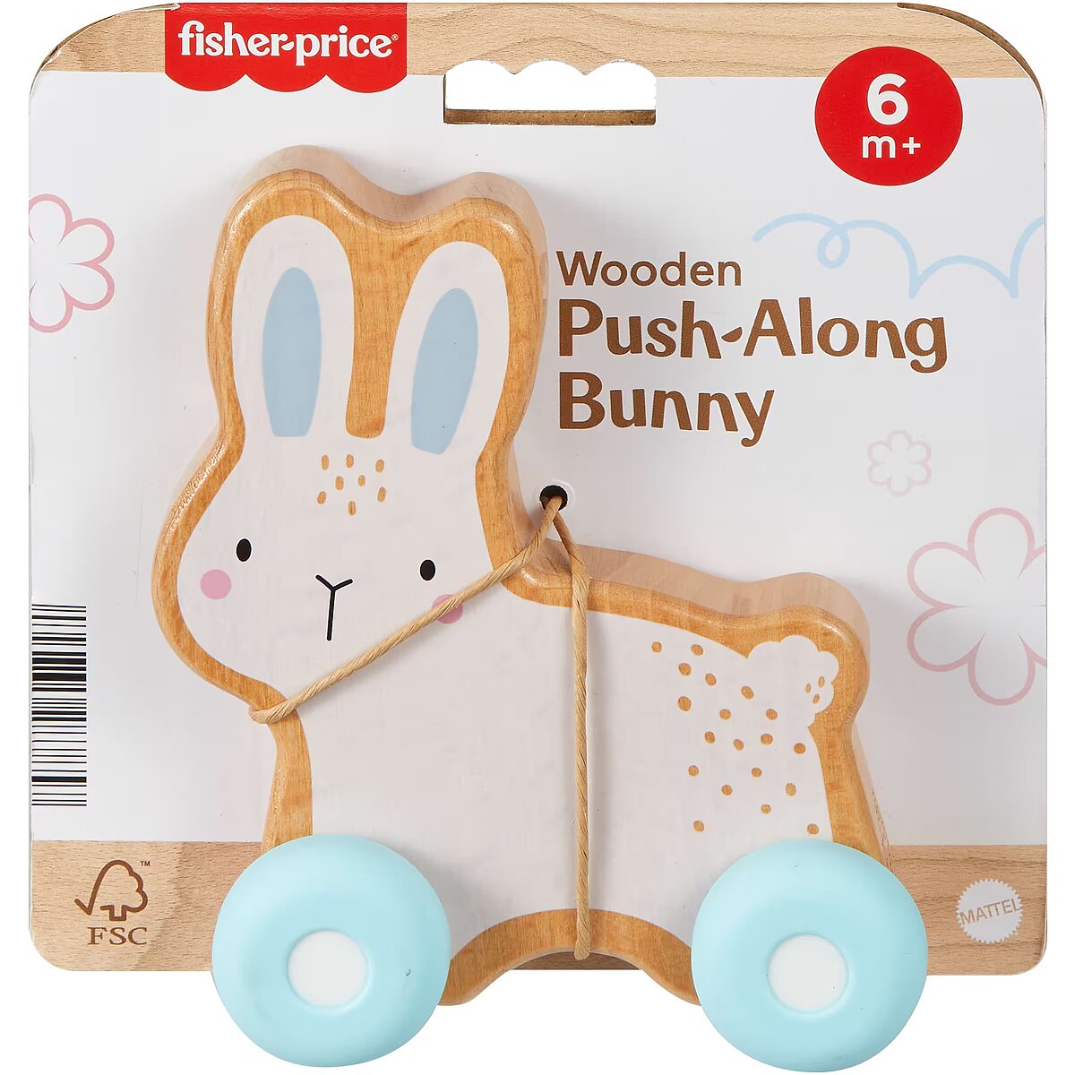 LongDesc - Baby can “hop” from sit-at play to crawl-and-chase fun with the Wooden Push-Along Bunny toy from Fisher-Price. This bunny rabbit-themed toy vehicle features free-rolling wheels and is sized just right for small hands to grasp, push and roll here, there and everywhere! Made with wood from Forest Stewardship Council-certified sources (FSC-N004566) and decorated with non-toxic, water-based paints, this push-along toy helps foster fine and gross motor skills. Colours and decorations may vary.
