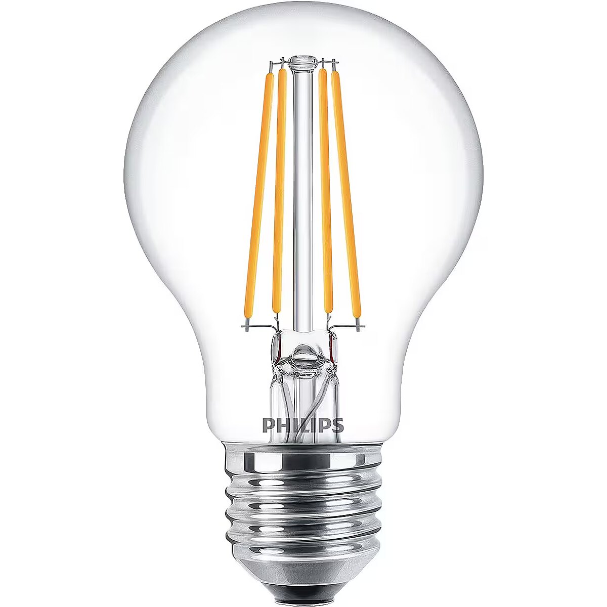 LongSummaryDescription - Philips Filament Bulb Clear 60W A60 E27. Bulb power: 7 W, Equivalent bulb power: 60 W, Fitting/cap type: E27, Luminous flux: 806 lm, Bulb lifetime: 15000 h, Light colour: Warm white, Colour temperature: 2700 K, Color Rendering Index (CRI): 80, Power factor: 0.51
