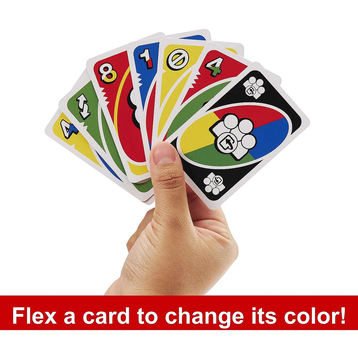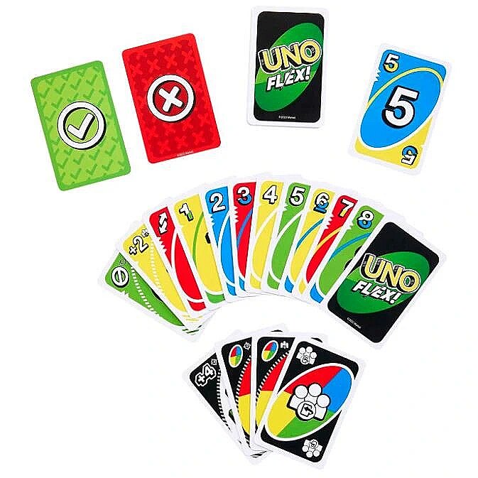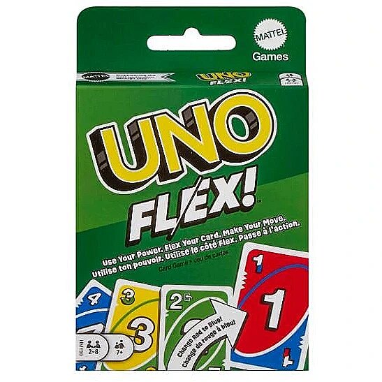 LongDesc - UNO Flex Card Game is based on the UNO Card Game players know and love, but with a flexible attitude. Special cards let players change a card colour to make a match -- a Red 4 can become a Green 4 in one flex. Power Cards and Flex Action Cards add even more bends to the game! Perfect for families, parties and game nights, it makes a great gift for UNO fans and card game lovers ages 7 years and up. Colours and decorations may vary.