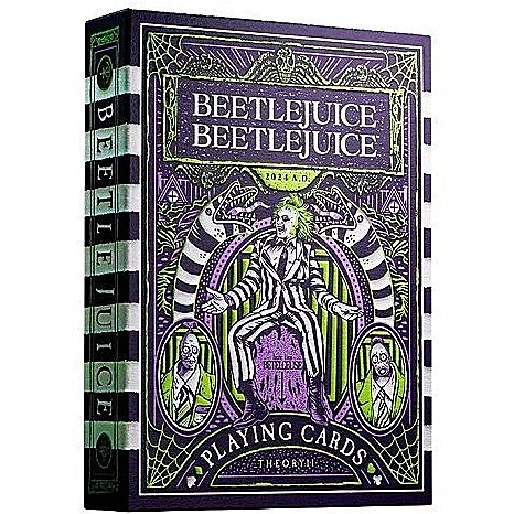 Description - Przygotuj się na niezapomniane wieczory z Beetlejuice - kartami, które są po prostu nie do przeżycia! Te wyjątkowe karty do gry inspirowane są makabryczną magią ponadczasowego klasyka. To obowiązkowy zestaw dla fanów oryginalnej produkcji oraz długo oczekiwanego sequela. Karty wyróżniają się żywym, slime'owym zielonym kolorem i hipnotyzującymi fioletowymi akcentami - Beetlejuice powraca z zaświatów, gotowy na wyzwania podczas twoich gier!
