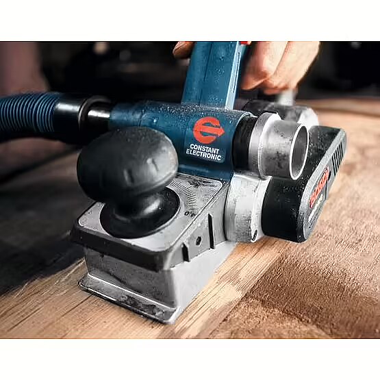 LongDesc - The planer for extremely high surface quality- The highest surface quality due to ultra-sharp blades and constant speed, even when working in hardwood- The fastest and least expensive blade changes on the market due to durable Woodrazor reversible blades and the easiest possible adjustment- The longest lifetime due precise aluminium bearing seat and thermodynamic motor protection- Easy, precise and clearly legible depth of cut setting- Comfortable working due to chip clearance to left or right, as desired- 3 V-grooves for easy and flexible chamfering- Workpiece is protected thanks to parking rest- Lock-off switch for left-handers and right-handers- Planing blade and key depot- Handle and guide handle with softgrip- Complete with all accessories (tungsten carbide reversible blade, rebating width guide, rebating depth guide)Functions- Constant Electronic- Dust extraction