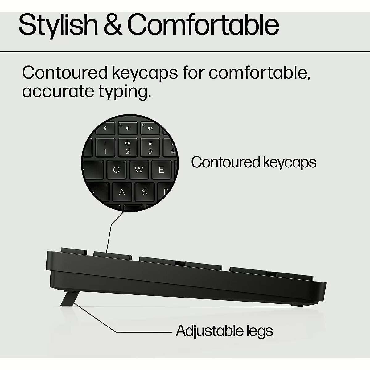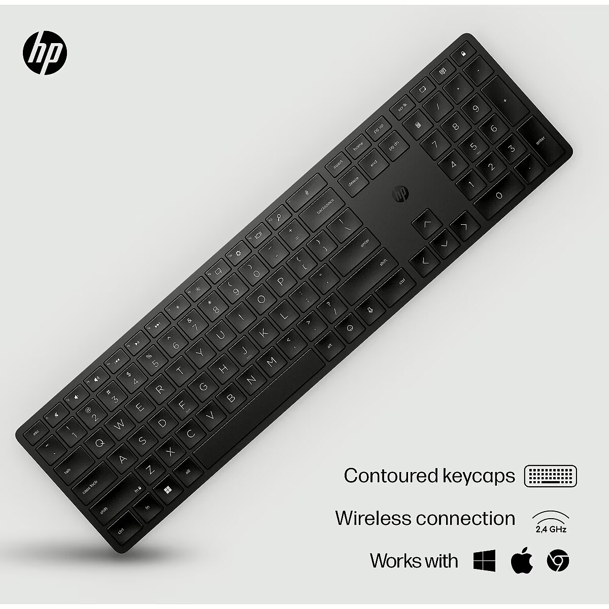 ShortSummaryDescription - HP 450 Programmable Wireless Keyboard, Full-size (100%), Wired & Wireless, RF Wireless + USB, Black