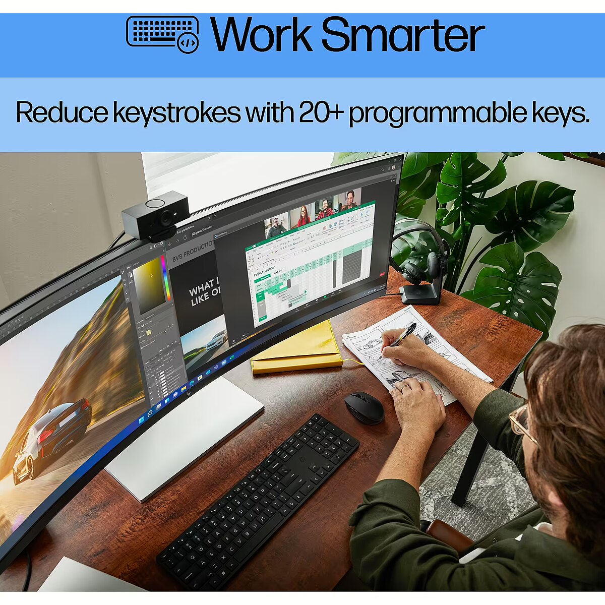 ShortSummaryDescription - HP 450 Programmable Wireless Keyboard, Full-size (100%), Wired & Wireless, RF Wireless + USB, Mechanical, QWERTY, Black