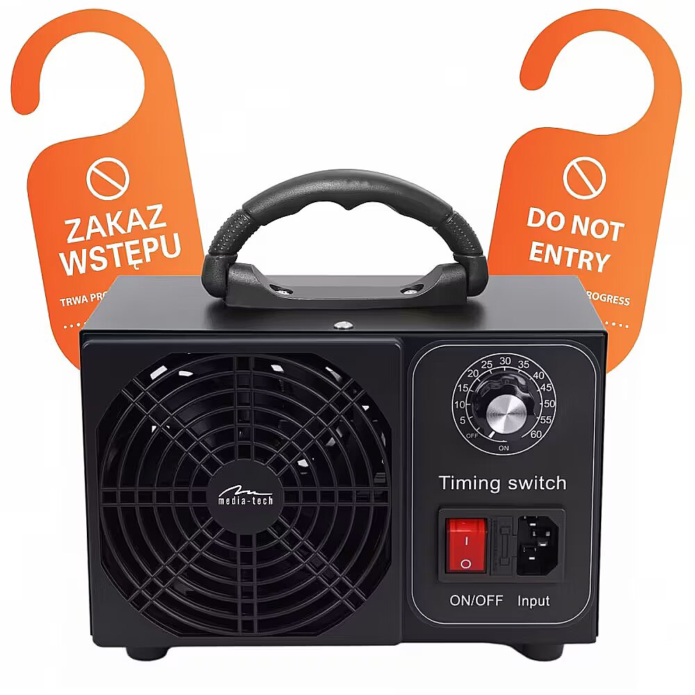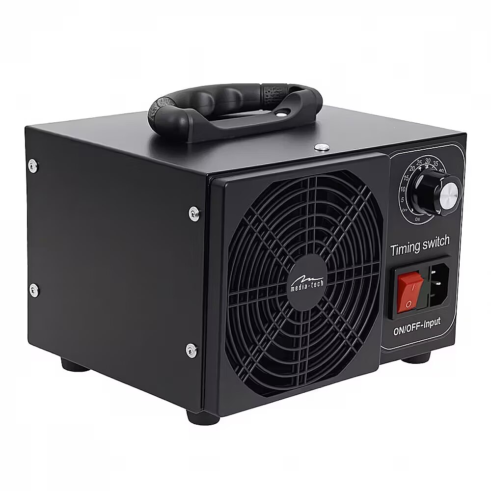 Description - Ozone Generator for Air Disinfection and Purification OZONE GENERATOR MT6540 Ozone output: 60,000 mg/h Power: 140 Timer: up to 560 minutes 4 ceramic plates with ruthenium coating Fan speed: 2,600 RPM   The ozone generator is ideal for use in many situations: Disinfection of rooms, vehicles, and air conditioning systems Elimination of pet odors and smoke Removal of mold and fungi Refreshing offices, hotels, and apartments Warning: The ozone generator is intended for use in empty rooms only. No people or animals may be present during operation. After ozone treatment, the room must be thoroughly ventilated.