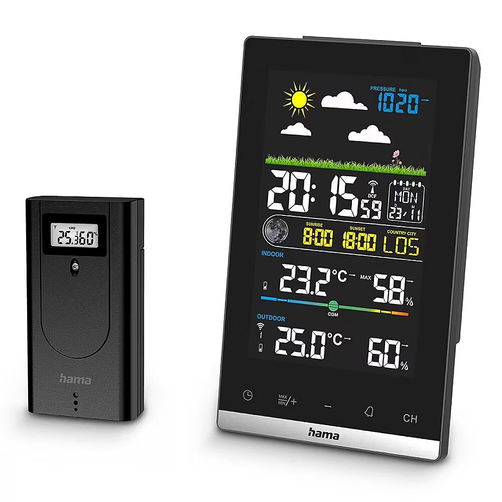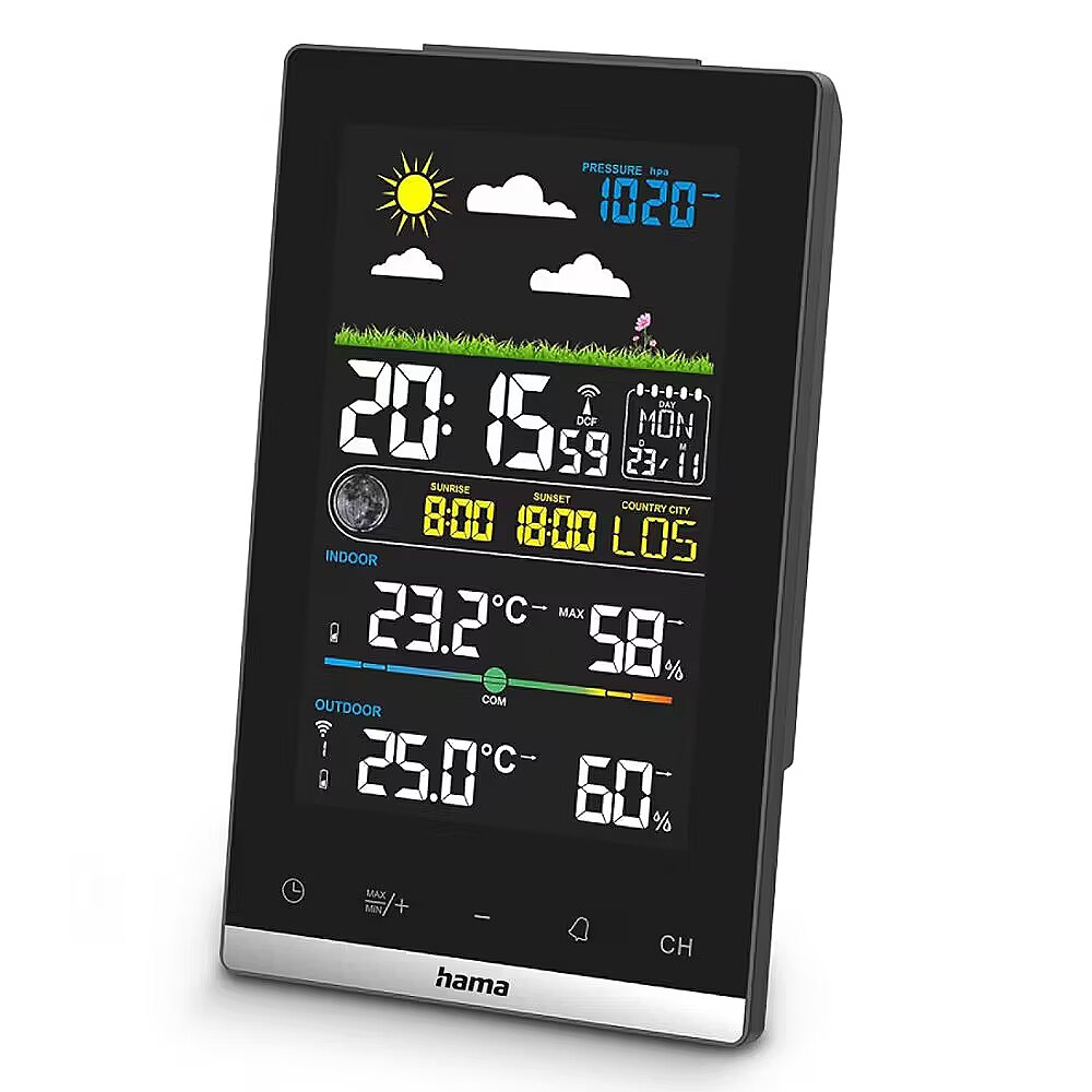 Stacja pogodowa Hama "Jamaika" umożliwia codzienne monitorowanie warunków atmosferycznych wewnątrz i na zewnątrz. Dzięki prognozie pogody z 7 symbolami, będziesz na bieżąco informowany o zmianach aury. Dodatkowo, stacja dokładnie mierzy ciśnienie powietrza i wilgotność, co pomoże Ci zaplanować każdy dzień.