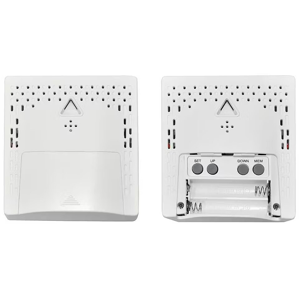 Description - WS10WH weather station Weather station with internal and external temperature and humidity reading, temperature and humidity trend indicator. Stay up to date with the weather! Thanks to the small, portable WS10WH weather station, you will always be up to date with the temperature and humidity in your apartment, office or office. The included wireless sensor will provide information about the thermal conditions outside, and the graphic weather forecast will tell you what the weather will be like in the coming hours. Available temperature and humidity trend indications allow you to monitor thermal changes in your immediate surroundings. Thanks to the battery power supply, the weather station can be placed anywhere. Thermometer and hygrometer always at hand! WS10WH has a built-in sensor to measure temperature and humidity inside the room where it is installed. The additional wireless sensor included in the set can perform measurements outdoors or in any selected location. Data regarding both temperature and humidity measurements are constantly updated and displayed on the LCD display built into the weather station*. Additionally, the device has a memory for measuring the lowest and highest values, both temperature and humidity, which reset automatically at the beginning of the next day. Temperature values can be displayed in degrees Celsius or degrees Farenheit. Get to know the trends in your home, including weather trends. In addition to reading temperature and humidity, trend indicators for these parameters are available. The arrows appearing on the screen indicate how the measured values have changed over the last hour. An up arrow means that a given parameter has increased its value, a down arrow indicates a decrease in the value of a given parameter, and a horizontal arrow means that a given value has not changed. You don't have to wait for the weather forecast, just take a look at our station! The display of the WS10WH weather station also provides a graphical weather forecast for the next 12-24 hours. Please note that this forecast is calculated based on temperature and humidity fluctuations and has limited accuracy, but it is a useful tool for estimating weather conditions for the next few hours in a specific location. Depending on the prevailing conditions, pictograms are available predicting sunny, partly cloudy, cloudy, rainy or snowy weather. Will I need to scrape the car windows? You'll know the answer to this question before you leave home, because the WS10WH weather station also has a freezing point indicator. When the measured external temperature reaches the low limit value, the device will emit a sound signal and an appropriate graphic symbol will appear on the display. When the temperature increases, the freezing point indicator will turn off automatically. What time is it? There is also a clock on the LCD screen that can display the current time in both 12- and 24-hour formats. Thanks to this, the station also functions as a useful watch. To erect or to hang? Do what suits you best. The station casing has been designed in such a way that the entire device can be placed on a table, desk, window sill, or hung on the wall, because there is a hole for a hook in its back. The included wireless sensor can also be placed or hung. Remember to place the sensor in a place protected from wind and rain and in the shade, without direct sunlight, which may adversely affect the reading of temperature and humidity values. Like the best electric car, powered only by batteries! The WS10WH weather station is powered by two AAA batteries included in the set, and the wireless sensor is powered by two AA batteries, which are also included. Thanks to the battery power supply, the device can be easily carried and used in various places in the house, in the garage, on the plot or in any other location where it will be needed. Main features: Thermometer and hygrometer measure the current temperature and humidity both indoors and outdoors. Memory of daily measurements of the highest and lowest temperature and humidity values Temperature and humidity trend indicator - indication of fluctuations in measurement values over an hourly interval Graphical weather forecast, available pictograms announcing sunny weather, partly cloudy weather, cloudy weather, rain and snow. Freezing point indicator - graphic and voice signal informing about the temperature drop below 3 degrees Celsius. Clock available in 12/24-hour format LCD display (without backlight) dimensions 53×62 mm Possibility of hanging and standing Battery powered with included batteries for both the station and the external wireless sensor.