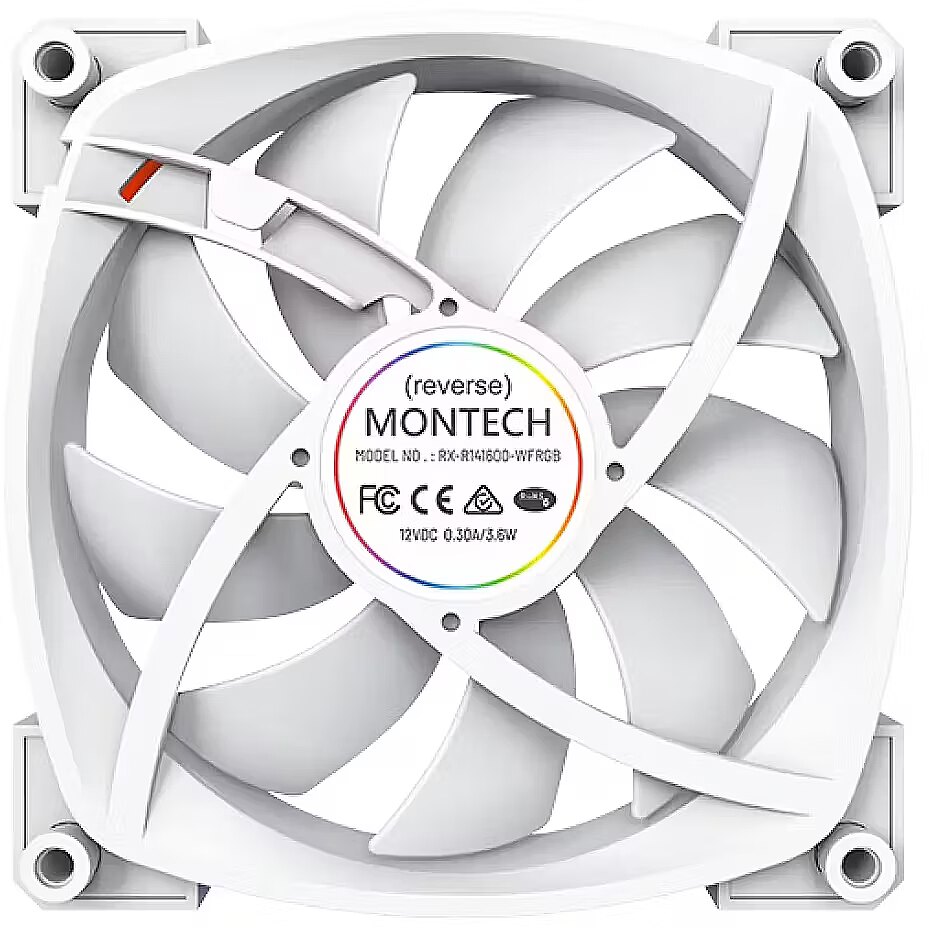 Summary - Montech RX140 PWM. Type: Fan, Fan diameter: 14 cm, Bearing type: Rifle bearing. Product colour: White