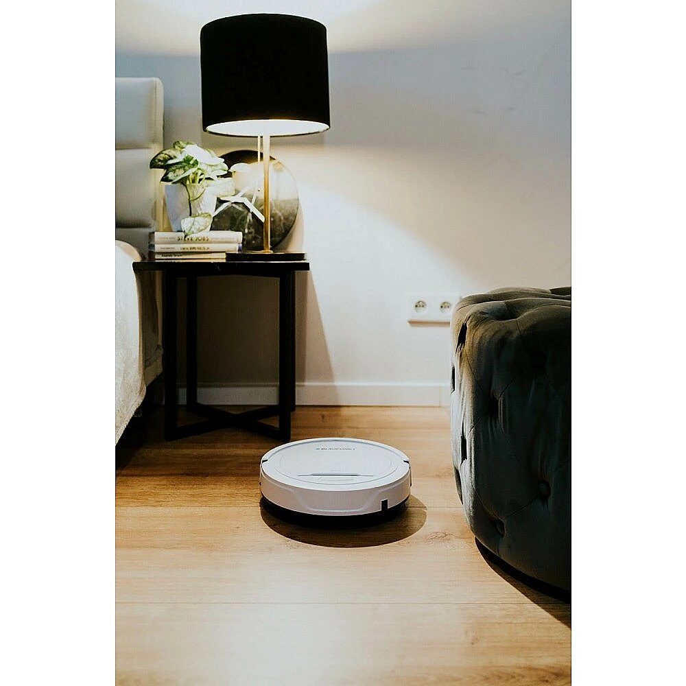 Description - RVC201 vacuum cleaner robot Vacuuming robots can be found more and more often in our homes and apartments. These inconspicuous-looking devices will perfectly help us with everyday cleaning and allow us to gain quite a lot of free time. Following the ever-increasing user requirements, Blaupunkt introduces a new model of the RVC201 vacuum cleaner robot, which is perfect for smooth wooden, laminated and ceramic floors, as well as carpets and short-pile rugs. The RVC201 model is equipped with 3 operating modes: random, spiral and along the walls, changing regularly from time to time, factory set. It also uses two side sweeping brushes and an efficient 10 W suction motor. Thanks to such solutions, we can be sure that the room will be well vacuumed. This is also facilitated by the compact size of the vacuum cleaner and its low profile, only 7.5 cm, which means that the robot will fit even under low beds or sofas. The vacuum cleaner can work continuously for about 55 minutes, after which the red LED on the switch button will indicate that the battery is discharged. It should then be connected to the ground for about 4-5 hours. The device will work until the battery is discharged or the user turns it off. The RVC201 vacuum cleaner robot saves a lot of time and is an irreplaceable help in everyday cleaning.