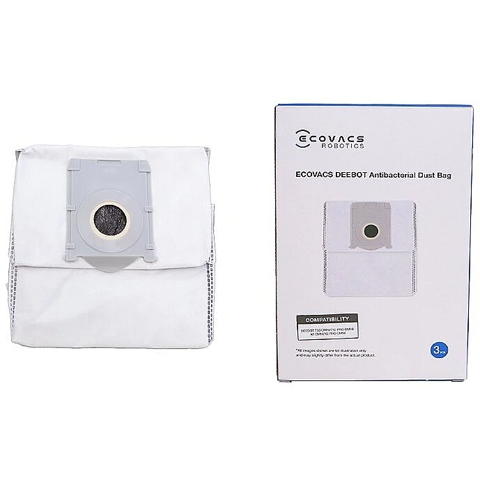 LongDesc - DEEBOT X8 / T50 / T50 Max Family, T30C Pro - 3x Antibacterial Dust Bags - Antibacterial non-woven fabric. Composite non-woven fabric material can prevent large dust particles from entering the motor room and damaging the high-speed motor. The new plastic sliding dust bag mouth sealing design, the dust bag is automatically sealed when it is removed, and there is no need to touch the dust during the whole process, effectively preventing dust from escaping. Antibacterial agents are added to the surface layer of the non-woven fabric and the inner layer of the meltblown fabric, which can easily filter large dust particles and inhibit the growth of bacteria and mold such as Escherichia coli, Staphylococcus aureus, and mold; The inner layer of the meltblown fabric adds an activated carbon layer to effectively absorb odors.