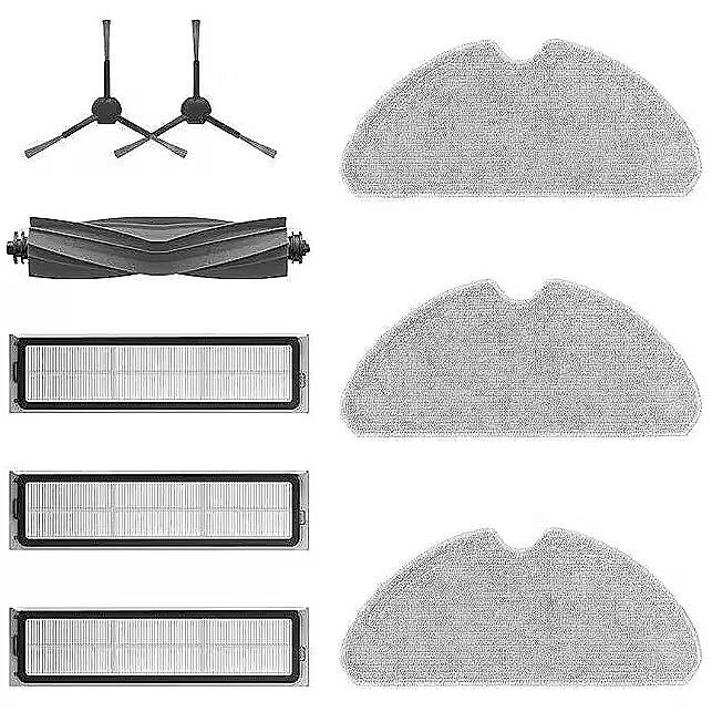 Description - Accessory kit for Dreame D9 Max gen2 cleaning robot. The accessory kit for the Dreame D9 Max gen2 cleaning robot is ideal for those who value perfect cleanliness and reliability of their device. The mopping pads allow you to clean the floors effectively and evenly, and the filter ensures clean air in your home, eliminating allergens and the smallest dust particles. The side brush perfectly reaches hard-to-reach areas, such as corners and edges, ensuring comprehensive collection of dust and dirt. Meanwhile, the main brush removes dirt from various types of floors, including carpets and laminate. Included: mopping pad x3 side brush x2 main brush x1 filter x3