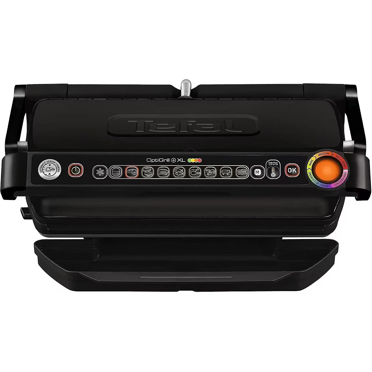 LongDescription EN - Including "Automatic Sensor Cooking" technology, time and temperature are automatically adjusted to the thickness and number of items placed on the grill, based on 9 cooking programs (Burger, Red meat, Sandwich, Sausage, Fish, Poultry, Seafood, Bacon, Pork) and a frozen food mode. At the same time, an indicator light allows direct monitoring: Purple for preheating, blue then green at the start of cooking, yellow when the food is rare, orange for medium and red for well-done. Perfectly adaptable to everyone's tastes, simply lift up the lid to pick up your meat when it's ready and leave the rest to carry on cooking!