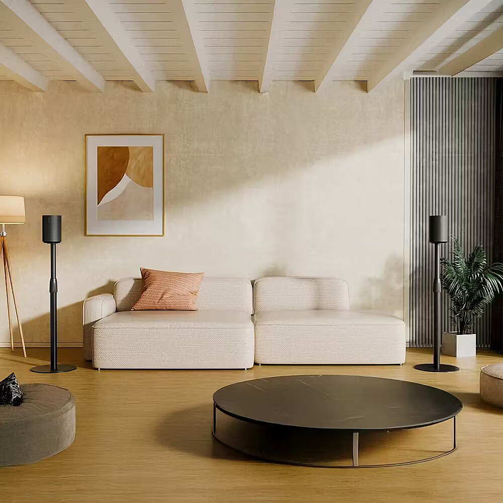 Other features - Manufacturer: Maclean Model: MC-496 Construction materials: powder coated steel, aluminum Height: 682~1068 mm (adjustable) Base diameter: 300 mm Compatible with speakers: Sonos Era100, Sonos Era300 Cable masking system Number of pieces included: 2 Color: black