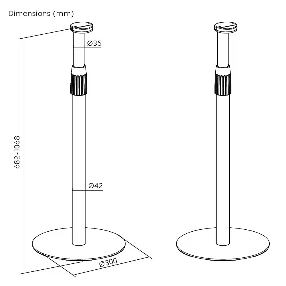 Dimensions - Height: 682~1068 mm (adjustable) Base diameter: 300 mm