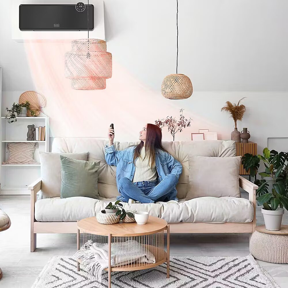 Description - Grzejnik na ścianę 2000 W 2 poziomy mocy (1000 W/2000 W) Funkcja wentylatora Regulowany termostat. Regulowana temperatura od 10 do 49C Stopień ochrony IP22 System PTC Programator dzienny i tygodniowy 24-godzinny timer Zabezpieczenie przed przegrzaniem Wyświetlacz LED System oscylacji W zestawie uchwyt ścienny Pilot zdalnego sterowania Zalecane do powierzchni do 20 m2