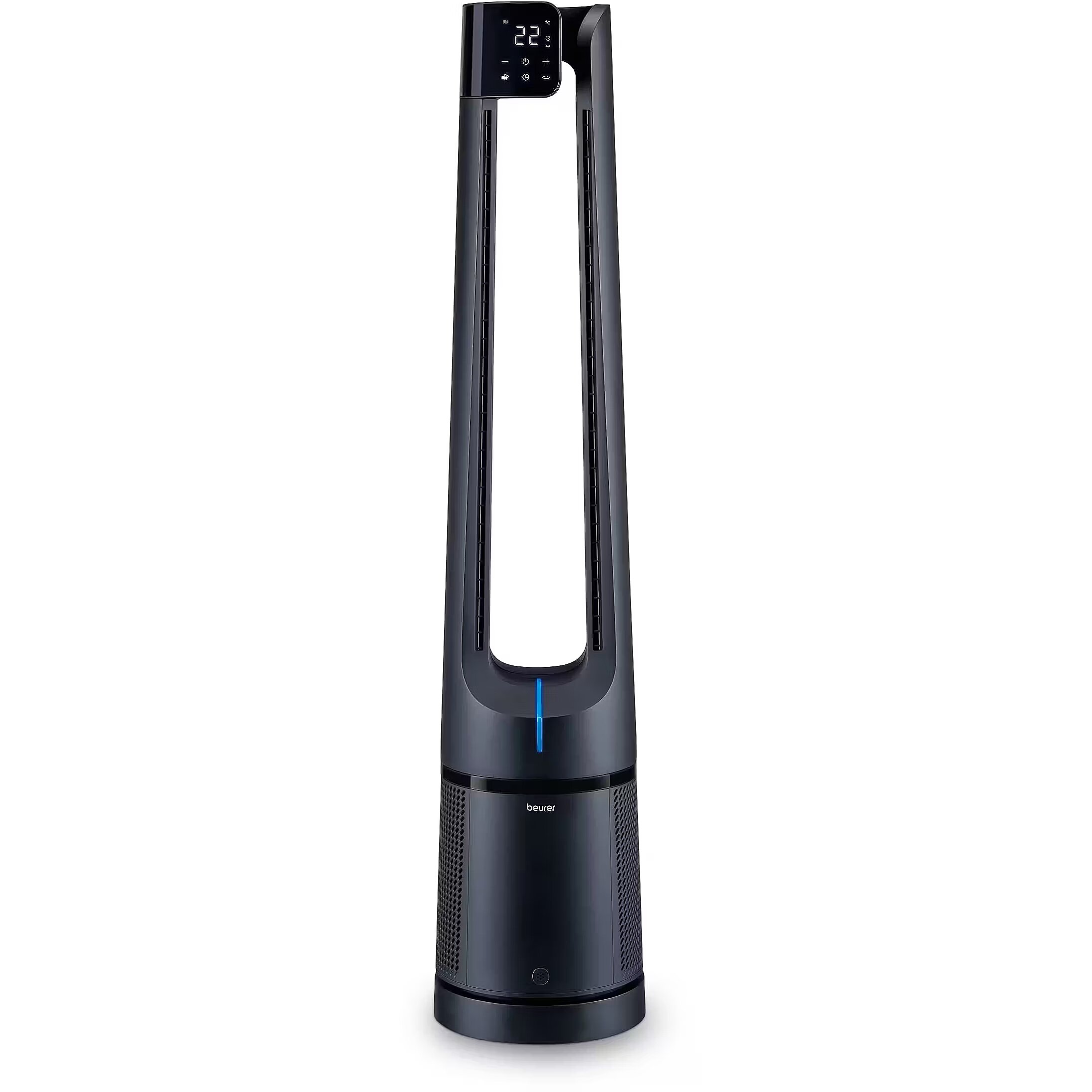 MediumDescription EN - The Beurer smart air purifier and fan combines modern design with versatile functionality to ensure a comfortable and healthy indoor climate all year round. Its intelligent auto mode adjusts performance based on real-time air quality, eliminating the need for manual settings. A color indicator instantly shows air status, while quiet operation and a timer make it ideal for use in bedrooms. • Smart automatic mode: Detects particles measuring 2.5 μm and adapts the cleaning performance to the ambient air