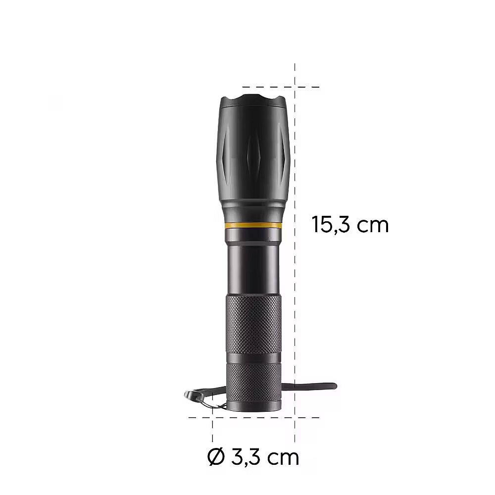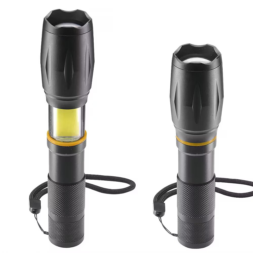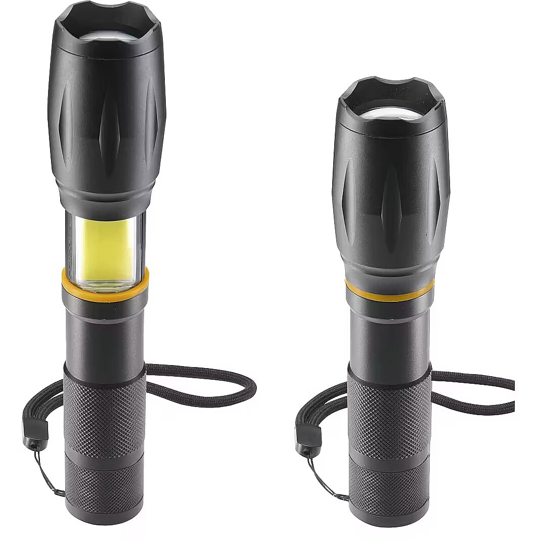 LongDesc - Powerful and robust LED torch for the toughest conditions in the workshop, vehicles, outdoor and leisure activities3 light modesAdjustable in 3 modes: the right light mode for every situation - a white LED with bright light, dimmed light and flashing lightZoom functionFocussable torch: adjustable light cone for perfect illumination of near and far areas, ideal for going into detail, but also for the big pictureHigh-brightness COB LEDLight range plus: the COB LED on the side, which can also be activated, illuminates evenly and over a large area