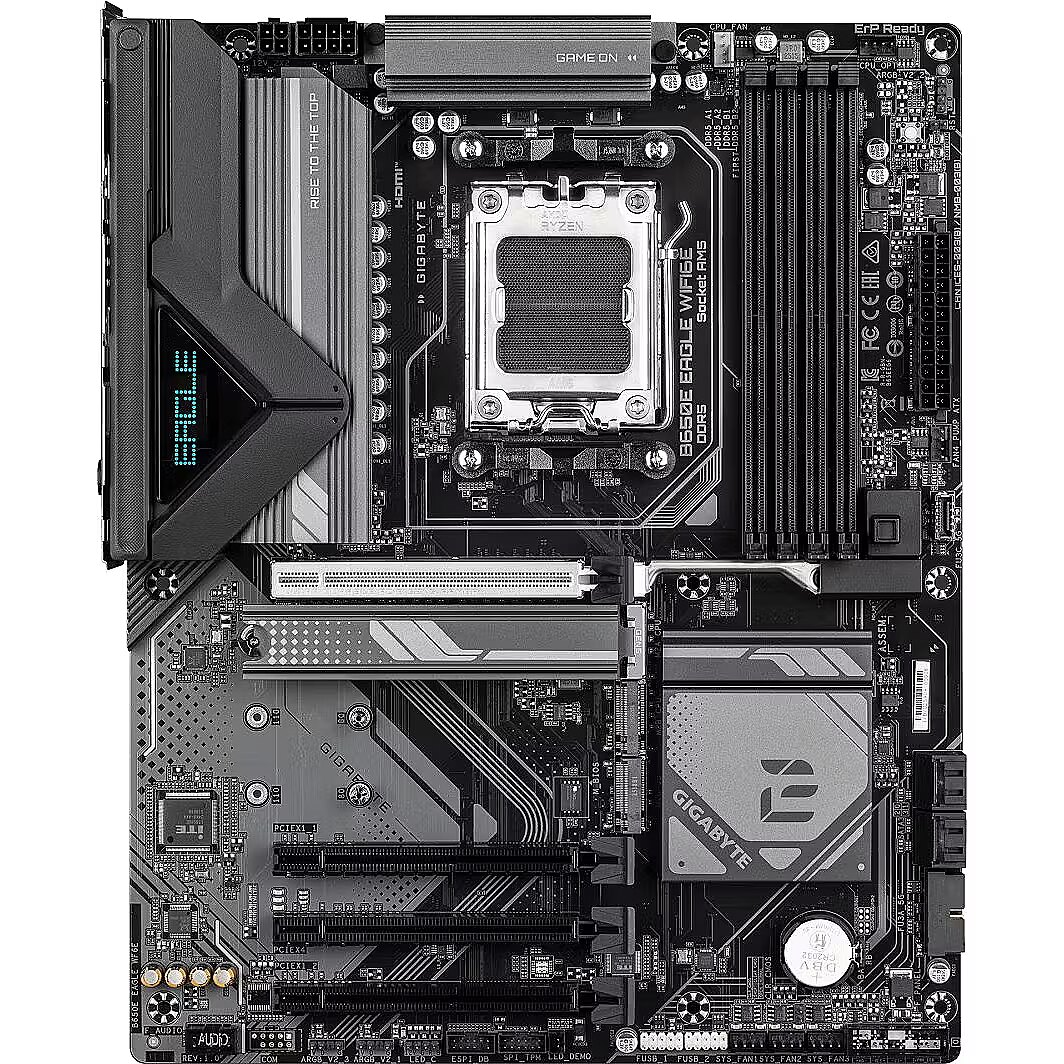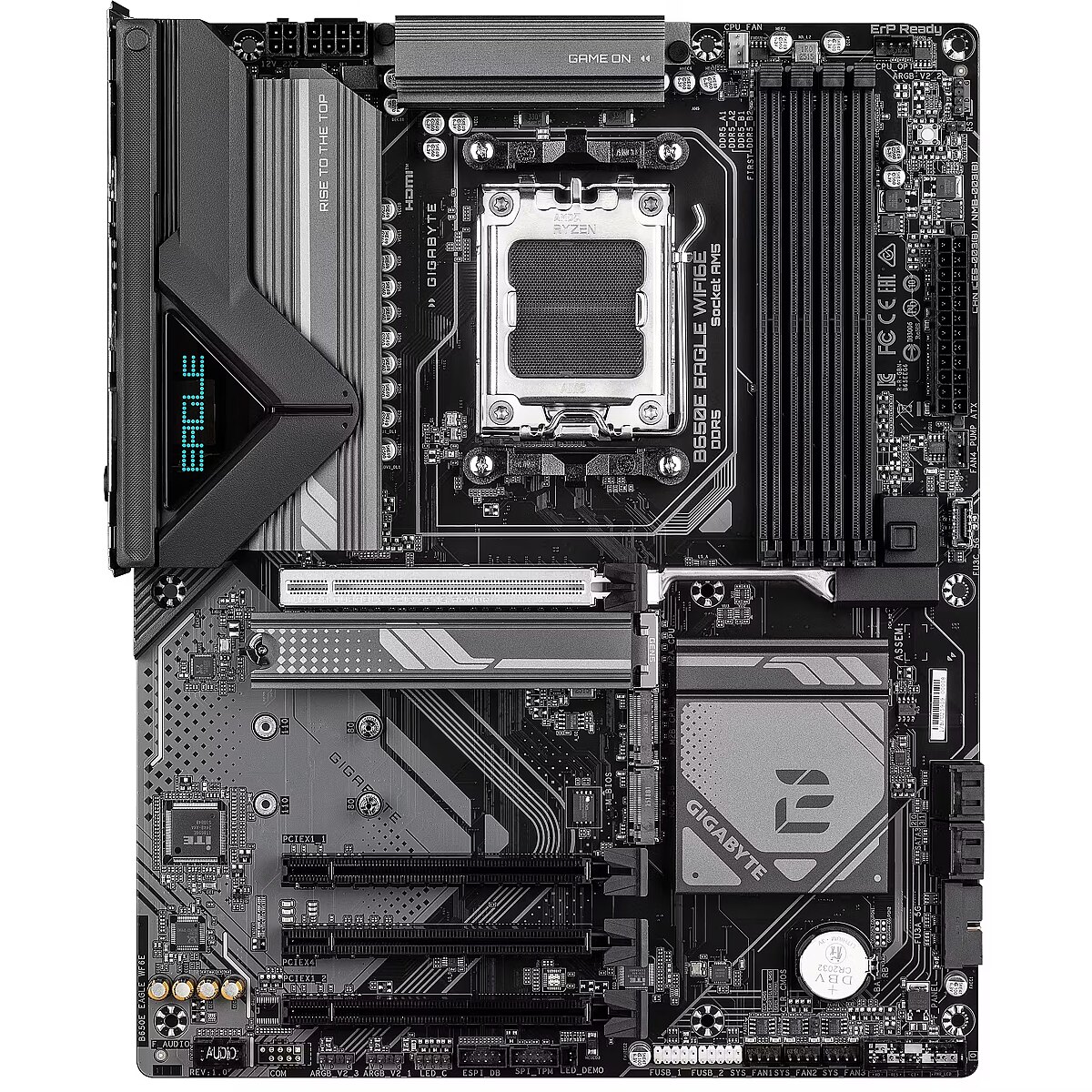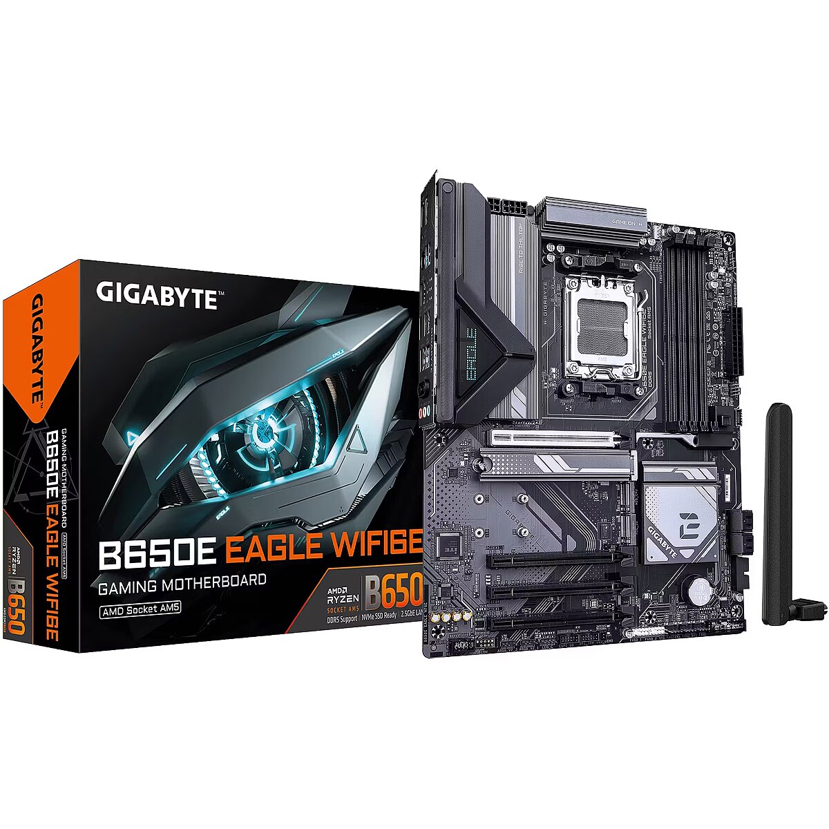 ShortSummaryDescription - GIGABYTE B650E EAGLE WIFI6E Motherboard - AMD Ryzen 9000 Series CPUs, 8+2+2 Phases VRM, up to 8200MHz DDR5 (OC), 1xPCIe 5.0 + 2xPCIe 4.0 M.2, 2.5GbE LAN, WIFI 6E, USB 3.2 Gen 2, AMD, Socket AM5, AMD Ryzen 7000 Series, AMD Ryzen 8000 Series, AMD Ryzen 9000 Series, Socket AM5, DDR5-SDRAM, 256 GB