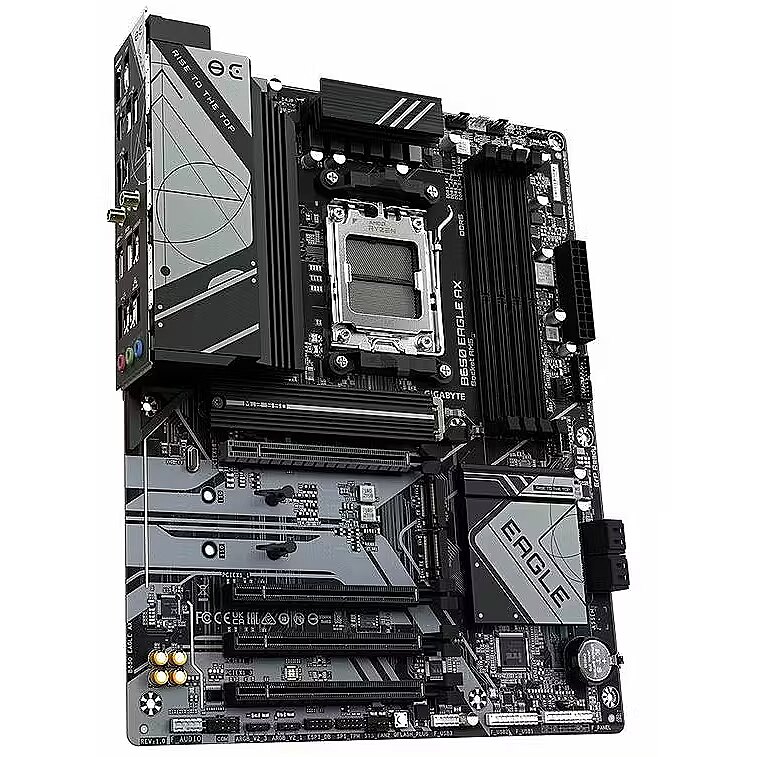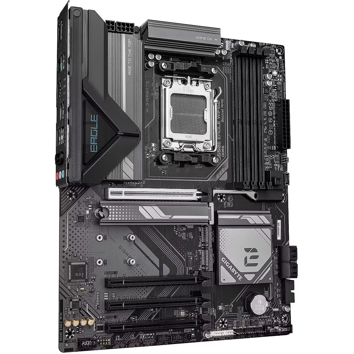 LongSummaryDescription - GIGABYTE B650E EAGLE WIFI6E Motherboard - AMD Ryzen 9000 Series CPUs, 8+2+2 Phases VRM, up to 8200MHz DDR5 (OC), 1xPCIe 5.0 + 2xPCIe 4.0 M.2, 2.5GbE LAN, WIFI 6E, USB 3.2 Gen 2. Processor manufacturer: AMD, Processor socket: Socket AM5, Compatible processor series: AMD Ryzen 7000 Series, AMD Ryzen 8000 Series, AMD Ryzen 9000 Series. Supported memory types: DDR5-SDRAM, Maximum internal memory: 256 GB, Memory slots type: DIMM. Supported storage drive interfaces: M.2, SATA III, Supported storage drive types: HDD & SSD, RAID levels: 0, 1, 5, 10. Maximum resolution: 4096 x 2160 pixels. Ethernet interface type: 2.5 Gigabit Ethernet, LAN controller: Realtek RTL8125, Top Wi-Fi standard: Wi-Fi 6E (802.11ax)