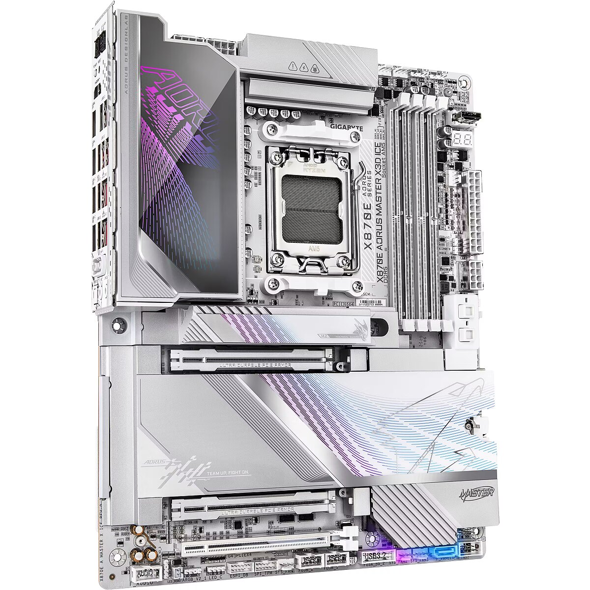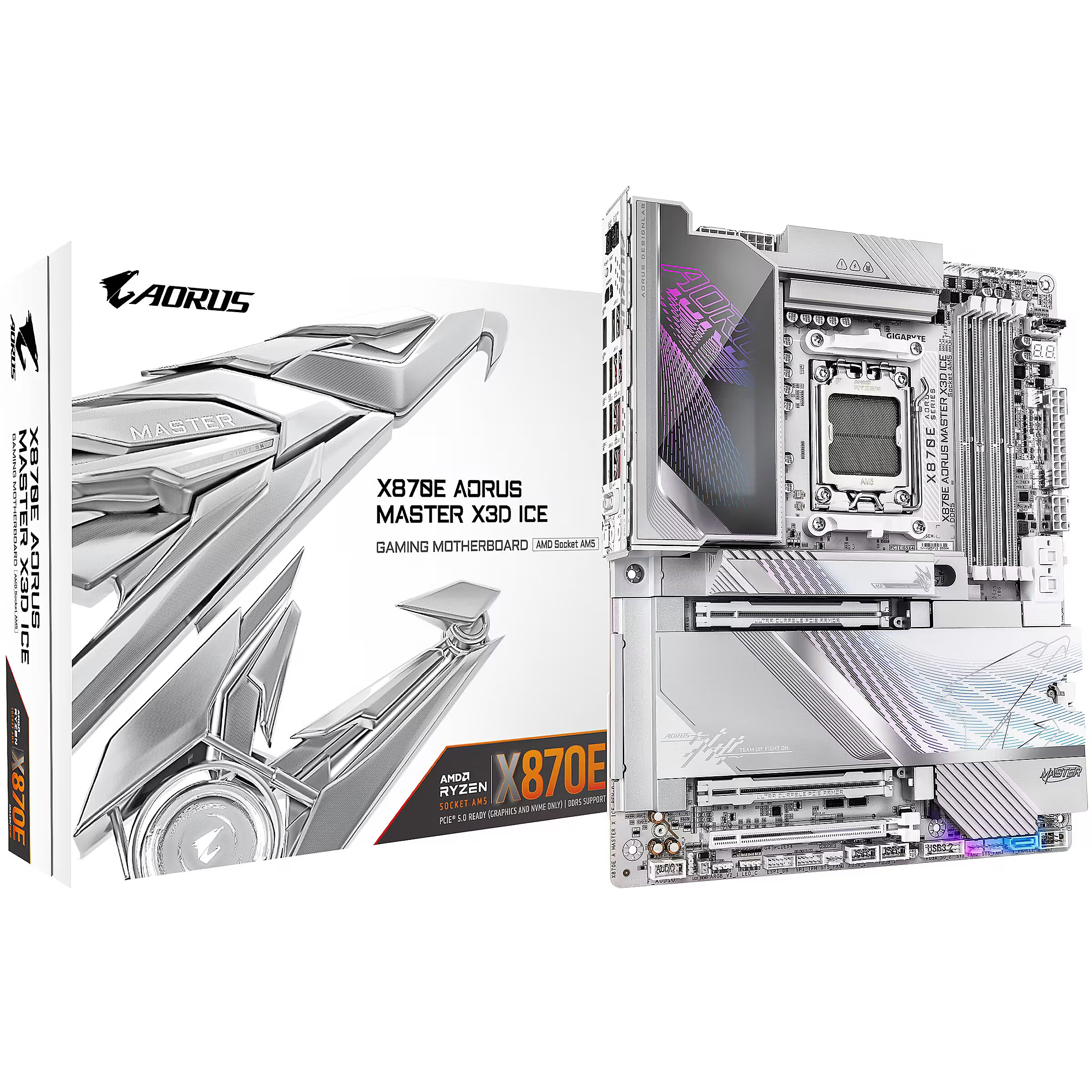 ShortSummaryDescription - GIGABYTE X870E AORUS MASTER X3D ICE Motherboard - Supports AMD Ryzen 9000 CPUs, 18+2+2 Phases Digital VRM, up to 9000Hz DDR5 (OC), 2xPCIe 5.0 + 3xPCIe 4.0, Wi-Fi 7, 10GbE LAN, USB 4, AMD, Socket AM5, AMD Ryzen 7000 Series, AMD Ryzen 8000 Series, AMD Ryzen 9000 Series, Socket AM5, DDR5-SDRAM, 256 GB