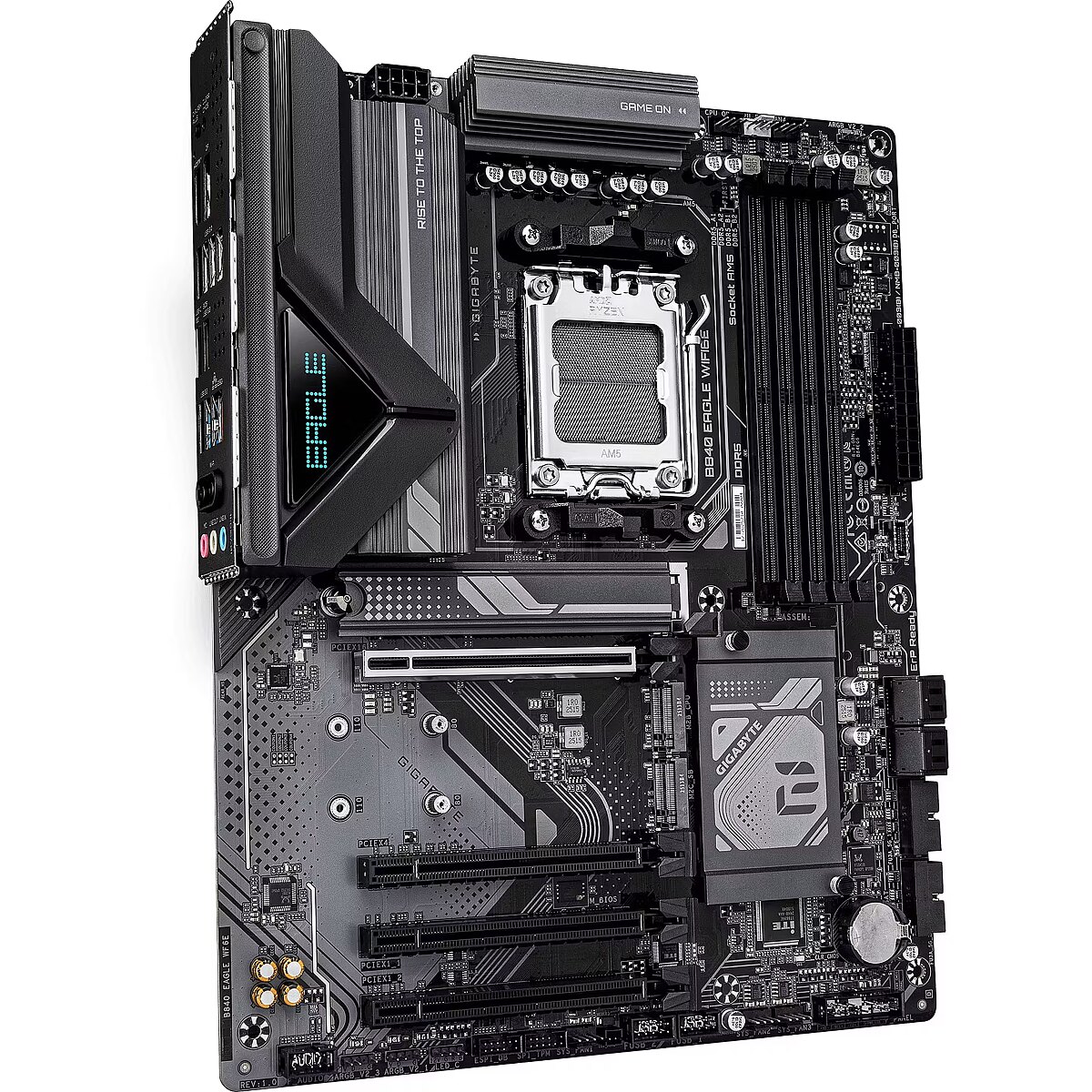 LongSummaryDescription - GIGABYTE B840 EAGLE WIFI6E Motherboard - AMD Ryzen 9000 CPUs, 8+2+2 Phases VRM, up to 8200MHz DDR5(O.C), 2xPCIe 4.0 + 1xPCIe 3.0 M.2, Wi-Fi 6E, 2.5GbE LAN, USB 3.2 Gen 2. Processor manufacturer: AMD, Processor socket: Socket AM5, Compatible processor series: AMD Ryzen 7000 Series, AMD Ryzen 8000 Series, AMD Ryzen 9000 Series. Supported memory types: DDR5-SDRAM, Maximum internal memory: 256 GB, Memory slots type: DIMM. Supported storage drive interfaces: M.2, PCI Express 3.0, PCI Express 4.0, SATA III, Supported storage drive types: HDD & SSD, RAID levels: 0, 1, 5, 10. Maximum resolution: 4096 x 2160 pixels. Ethernet interface type: 2.5 Gigabit Ethernet, LAN controller: Realtek RTL8125, Top Wi-Fi standard: Wi-Fi 6E (802.11ax)