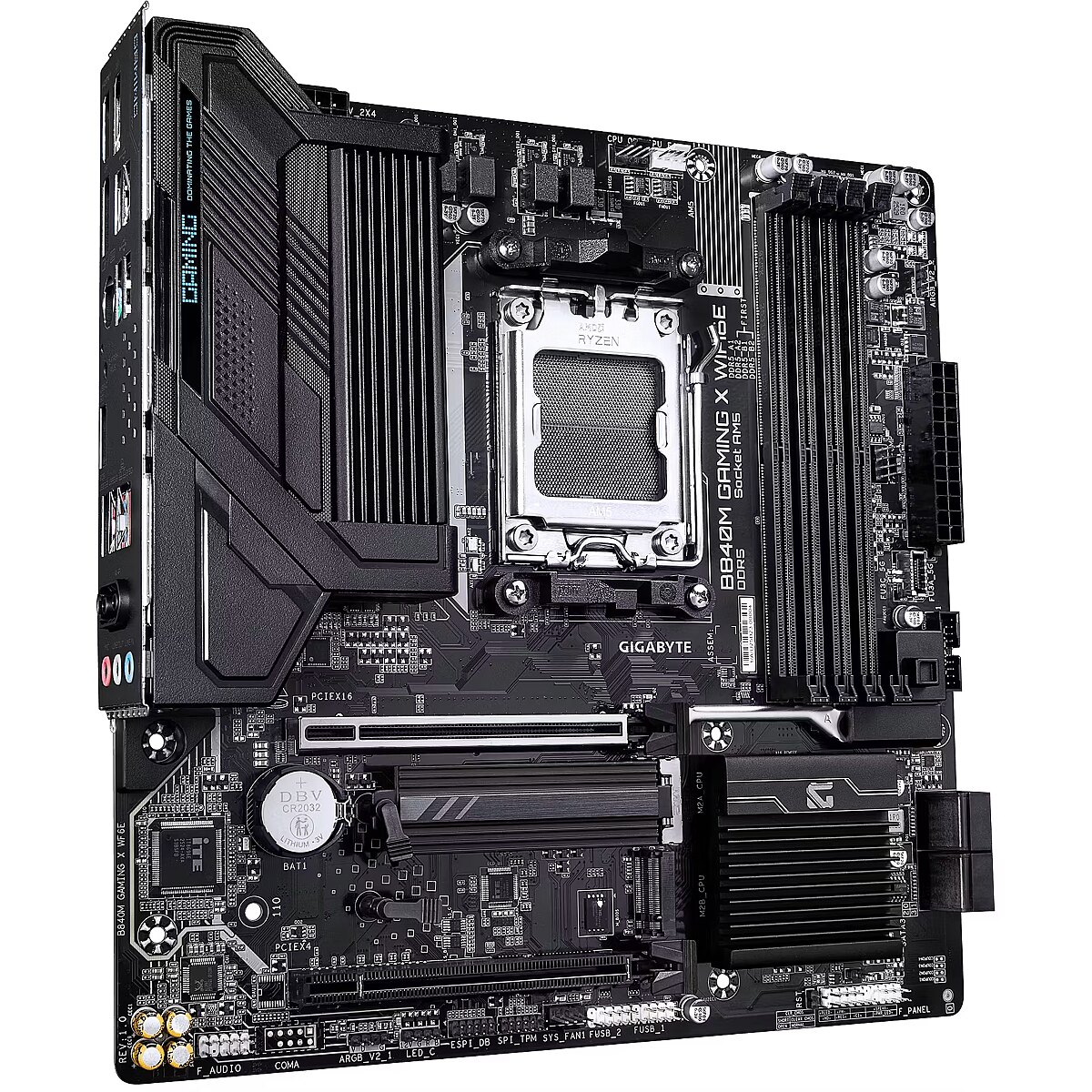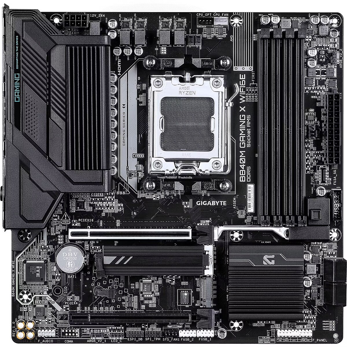 ShortSummaryDescription - GIGABYTE B840M GAMING X WIFI6E Motherboard - AMD Ryzen 9000 CPUs, 8+2+2 Phases VRM, up to 8200MHz DDR5(O.C), 2xPCIe 4.0 M.2, Wi-Fi 6E, 2.5GbE LAN, USB 3.2 Gen 1, AMD, Socket AM5, AMD Ryzen 7000 Series, AMD Ryzen 8000 Series, AMD Ryzen 9000 Series, Socket AM5, DDR5-SDRAM, 256 GB