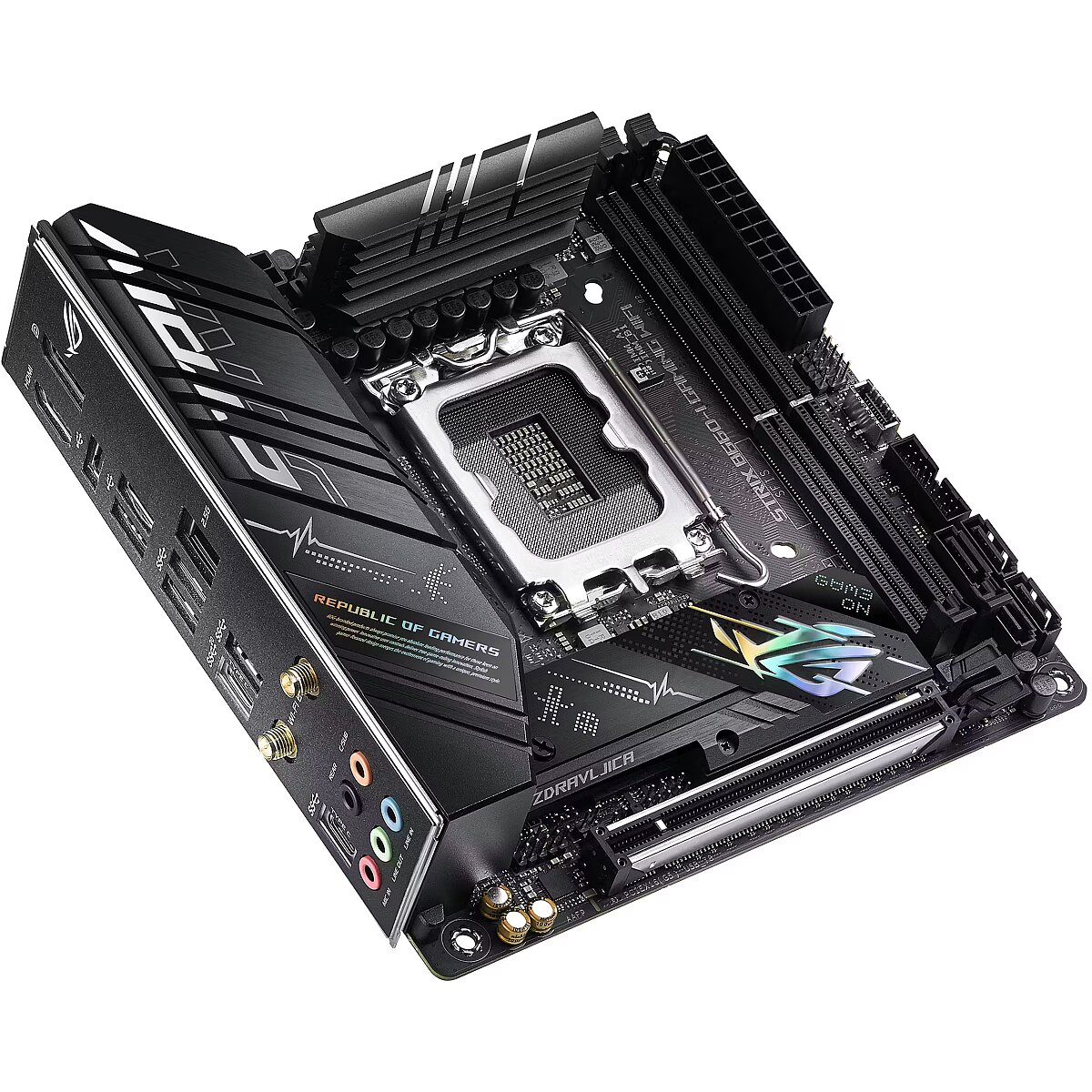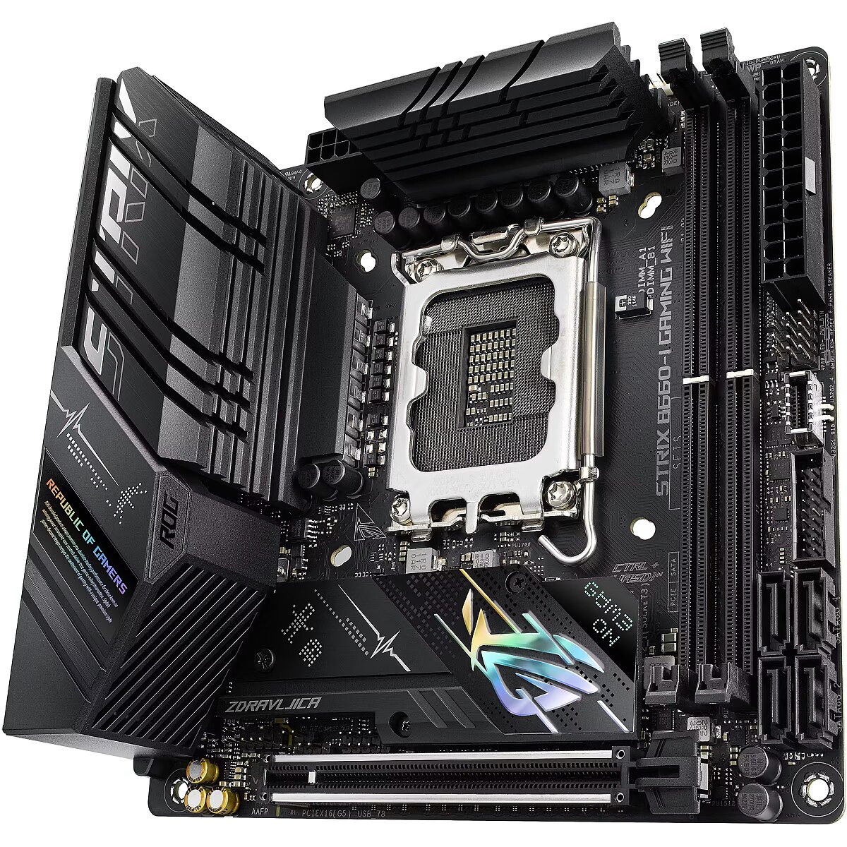 LongProductName - Intel® B660 LGA 1700 ITX motherboard with PCIe® 5.0, 8+1 power stages, DDR5 memory support, ASUS Enhanced Memory Profile, Two-Way AI Noise Cancelation, AI Cooling, AI Networking, WiFi 6 (802.11ax), Intel 2.5 Gb Ethernet, two PCIe 4.0 M.2 slots, USB 3.2 Gen 2x2 Type-C®, SATA and Aura Sync RGB lighting