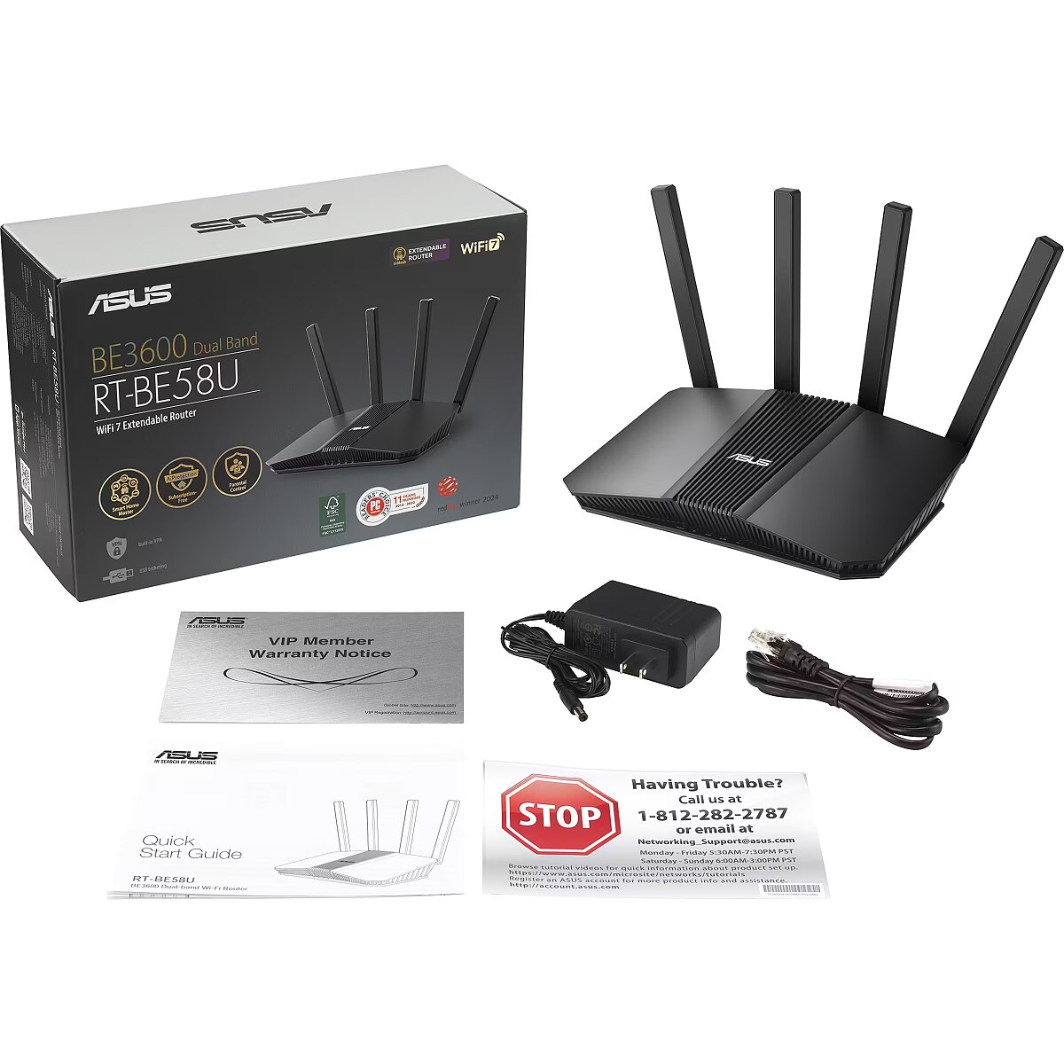 Description - ASUS RT-BE58U Worry-Free Smart Home WiFi 7 Elevate your smart home with blazing-fast dual-band Wi-Fi 7 speeds of up to 3600 Mbps and boosted coverage with AI-boosted Smart AiMesh technology. With next-gen ASUS Network Security and a suite of advanced network technologies such as IoT Network, the RT-BE58U safeguard your network end-to-end, 24/7.