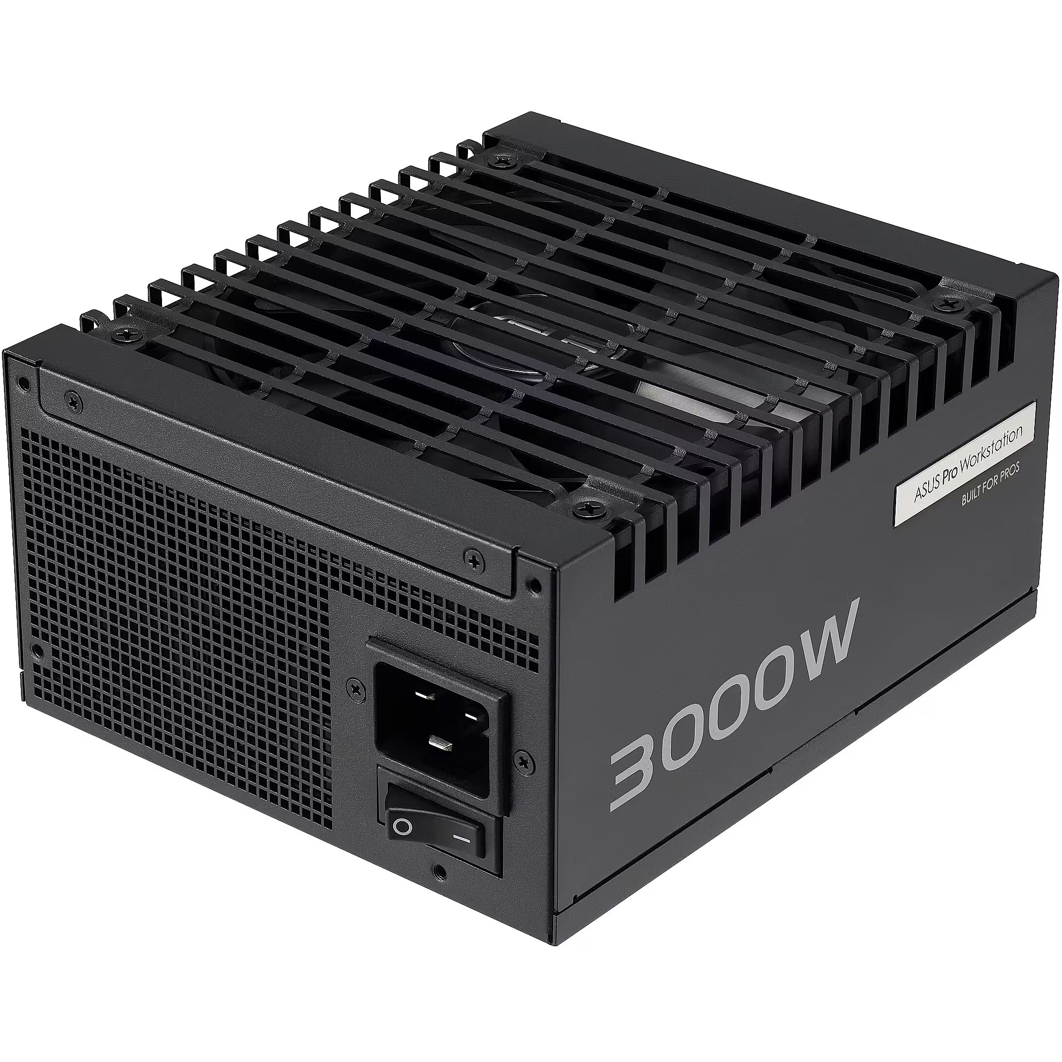 LongSummaryDescription - ASUS -PRO-WS-3000P. Total power: 3000 W, AC input voltage: 220 - 240 V, Power Factor Correction (PFC) type: Active. Motherboard power connector: 20+4 pin ATX, Motherboard power cable length: 61 cm, SATA power cable length: 120,400 mm. Purpose: PC, Power supply unit (PSU) form factor: ATX, 80 PLUS certification: 80 PLUS Platinum. Product colour: Black, Cooling type: Active. Width: 175 mm, Depth: 150 mm, Height: 86 mm