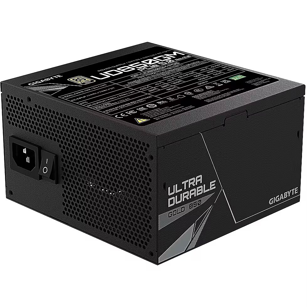 LongSummaryDescription - GIGABYTE UD850GM PG5 V2 Power Supply Unit- PCIe Gen 5.1, 80 PLUS Gold, Fully Modular Design, 120mm Fan, ATX 3.1 compatible, EU Plug. Total power: 850 W, AC input voltage: 100 - 240 V, AC input frequency: 50/60 Hz. Motherboard power connector: 20+4 pin ATX, Motherboard power cable length: 61 cm, SATA power cable length: 150,600 mm. Purpose: PC, Power supply unit (PSU) form factor: ATX, 80 PLUS certification: 80 PLUS Gold. Product colour: Black, Cooling type: Active, Fan diameter: 12 cm. Width: 150 mm, Depth: 140 mm, Height: 86 mm
