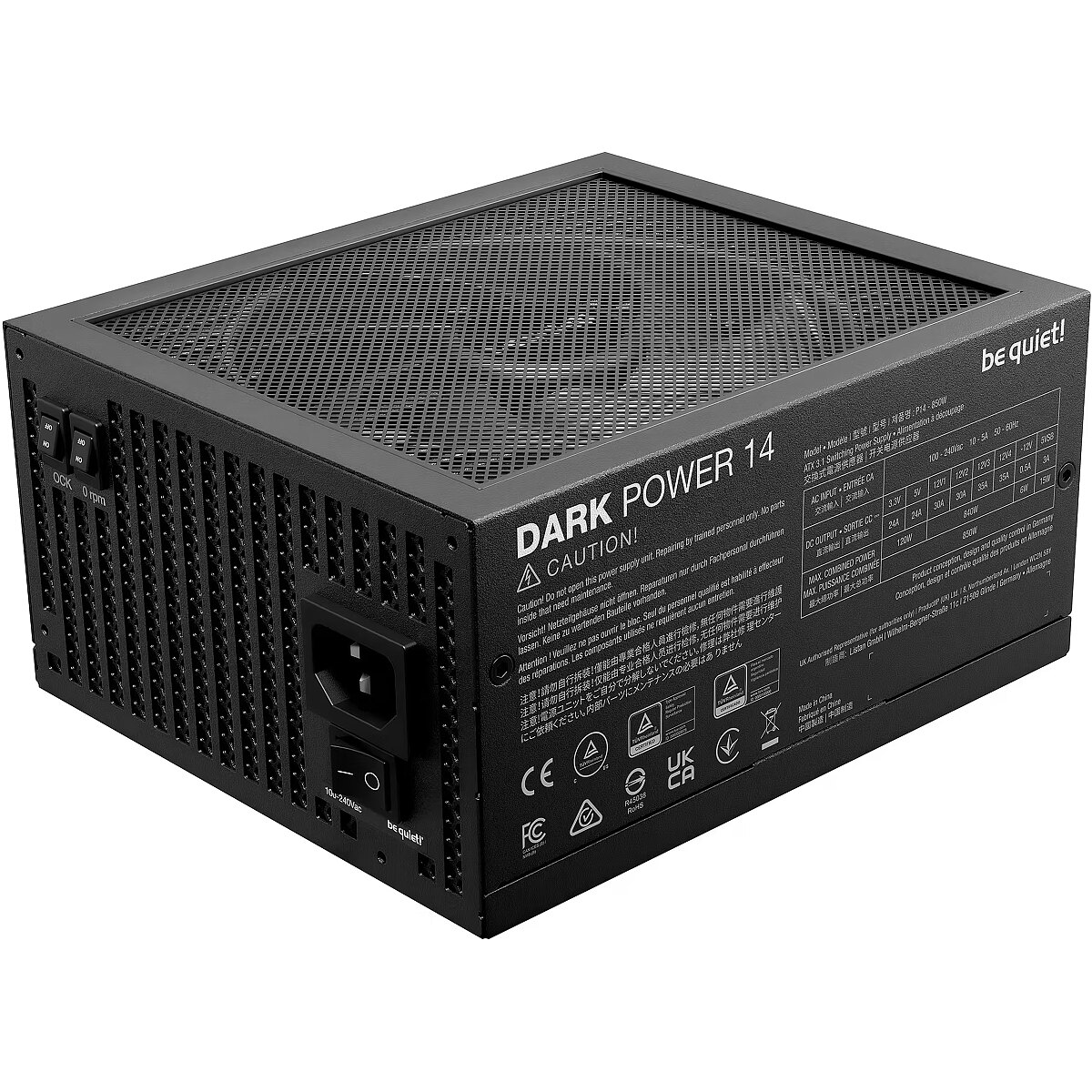 LongSummaryDescription - be quiet! Dark Power 14 850 W - 80 Plus Titanium. Total power: 850 W, AC input voltage: 100 - 240 V, Peak power: 950 W. Motherboard power connector: 20+4 pin ATX, Motherboard power cable length: 60 cm, SATA power cable length: 600,750,900,1050 mm. Purpose: PC, Power supply unit (PSU) form factor: ATX, 80 PLUS certification: 80 PLUS Titanium. Product colour: Black, Cooling type: Active, Fan diameter: 13.5 cm. Compliance certificates: CB, Federal Communications Commission (FCC), RoHS, TÜV mark, UKCA, WEEE, cTUVus