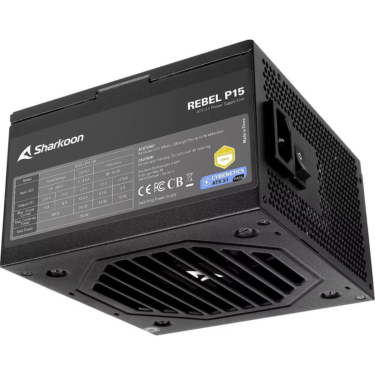 Sharkoon Rebel P15, 750W, Cybenetics Gold, ATX 3.1, PCIe 5.1