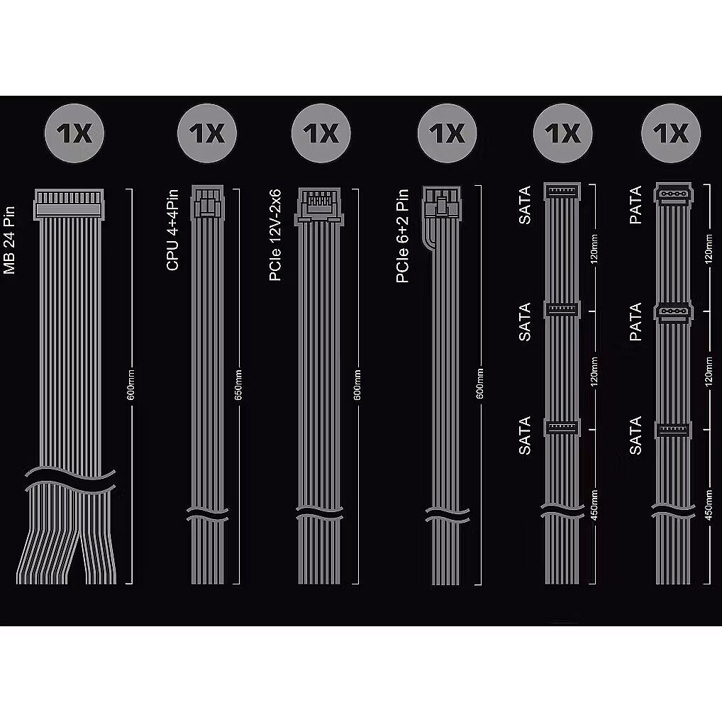 This power supply has no removable cables and all cables are attached to the power supply. It has a simple design, but it works just as well as a power supply with modular cables.