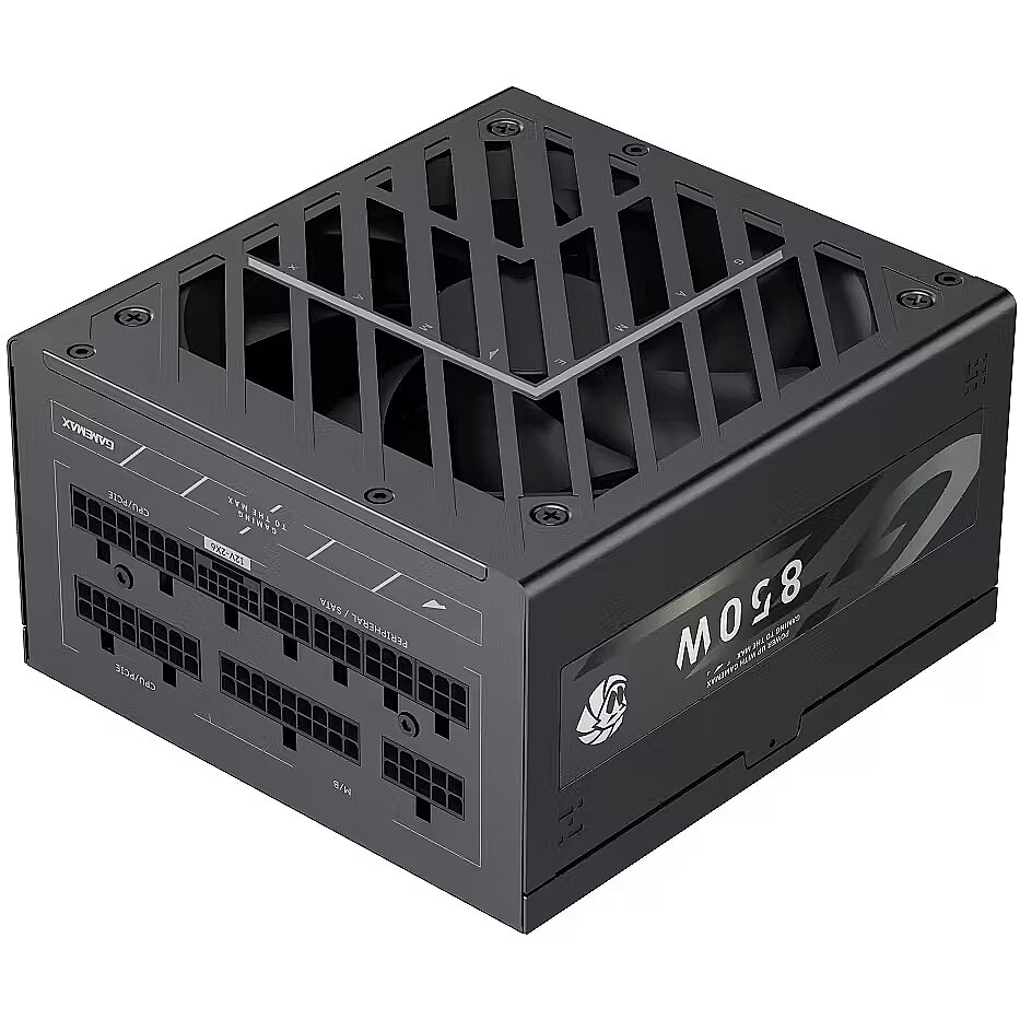 Available for purchase is a power supply produced by Gamemax with a power output of 850W. The product has been awarded an 80 PLUS Gold energy efficiency certificate.