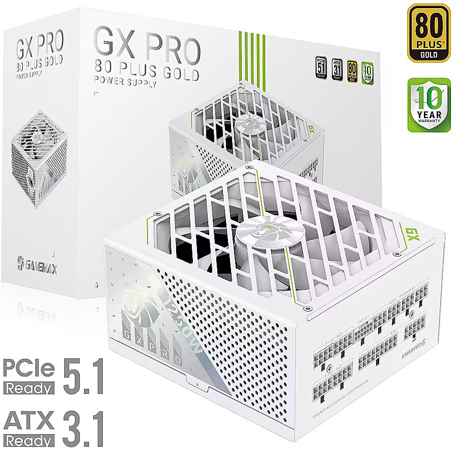 Gamemax GX PRO 1250G WH, 1250W, 80PLUS Gold, ATX 3.1, PCIe 5.1