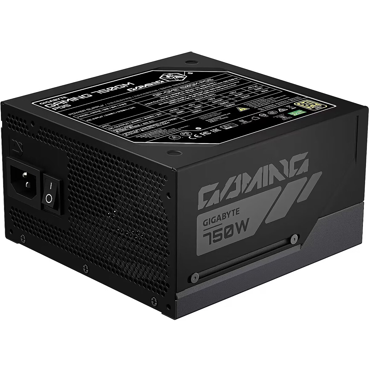 Available for purchase is a power supply produced by Gigabyte with a power output of 750W. The product has been awarded an 80 PLUS Gold energy efficiency certificate.