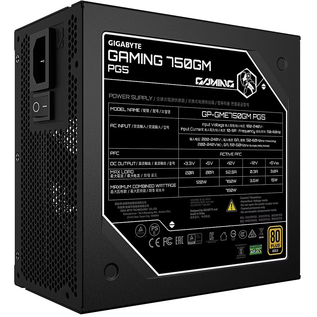 Gigabyte GAMING 750GM PG5, 750W, 80PLUS Gold, ATX 3.1, PCIe 5.1