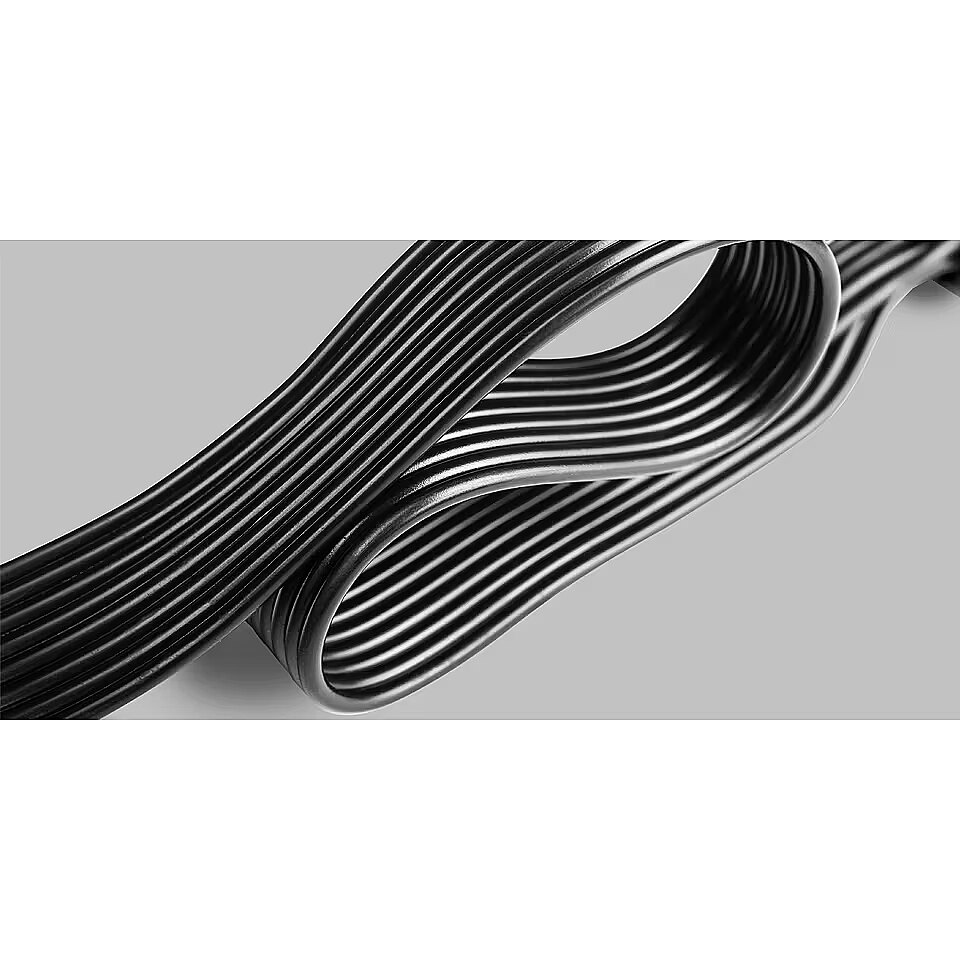 The color of the power supply is Melna. It is equipped with flat cables, whose color is Melna.