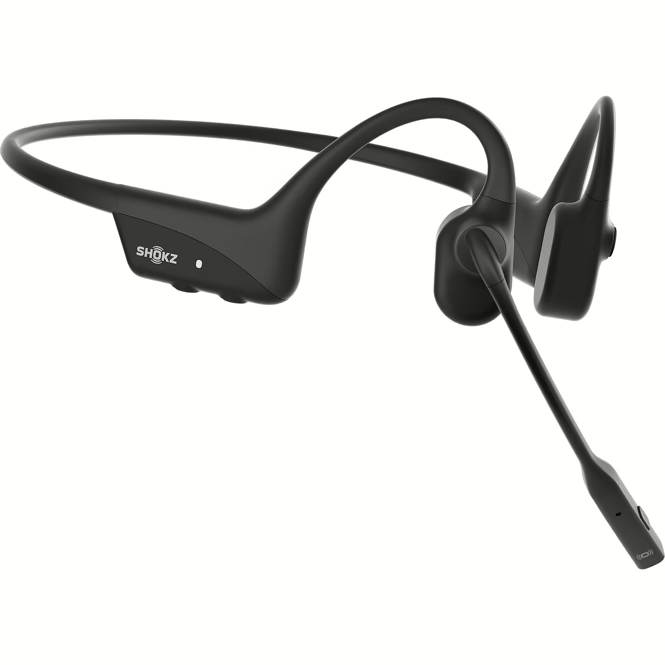 ShortSummaryDescription - SHOKZ OpenComm2 UC Wireless Bluetooth Bone Conduction Videoconferencing Headset with USB-A adapter | 16 Hr Talk Time, 29m Wireless Range, 1 Hr Charge Time | Includes Noise Cancelling Boom Mic and Dongle, Black (C110-AA-BK), Wireless, Office/Call center, 35 g, Headset, Black