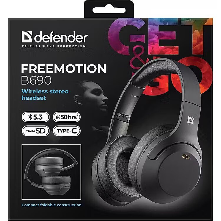 Description - Defender Freemotion B690 Bluetooth Headphones, Black.